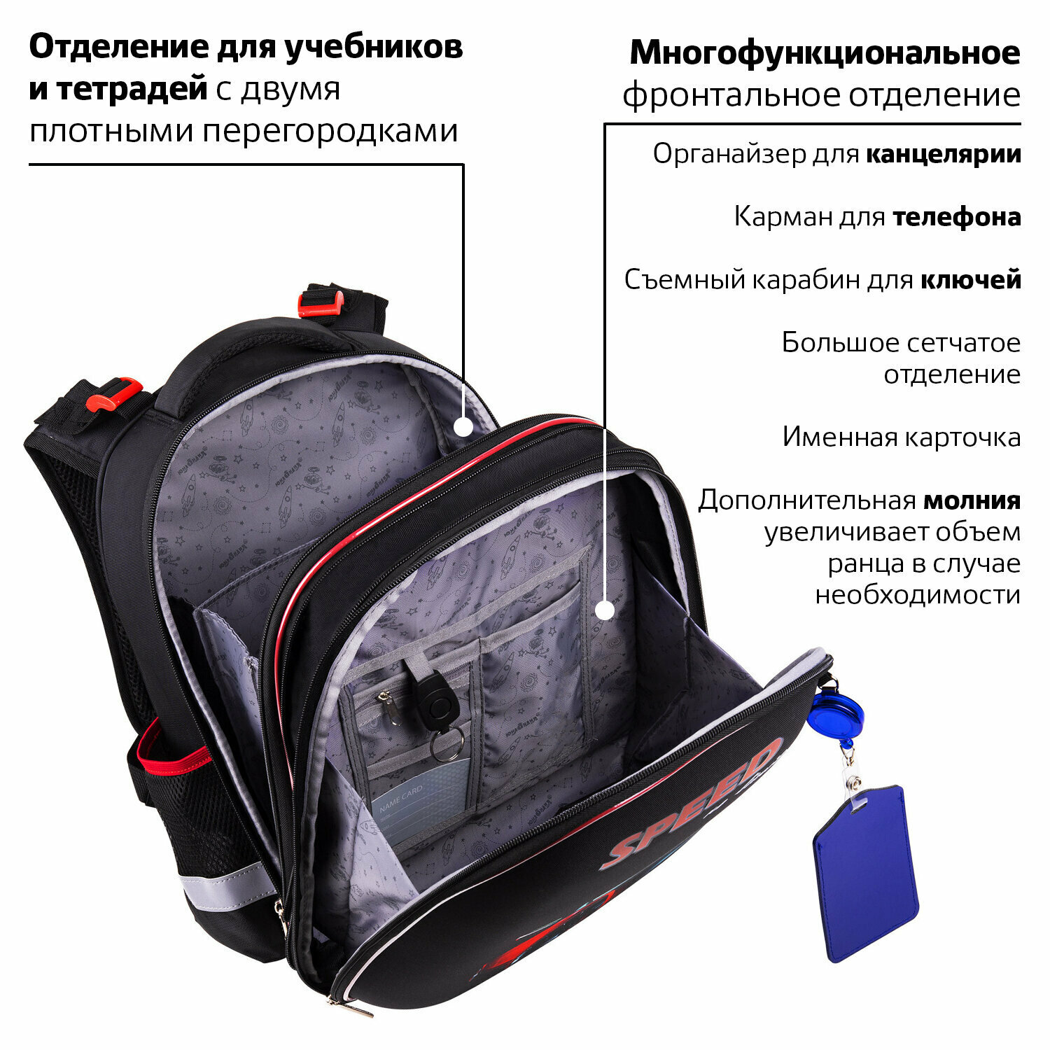 Ранец школьный (рюкзак) Юнландия Extra, с дополнительным объемом "No limits" 38х29х18 см (270678) интересное: