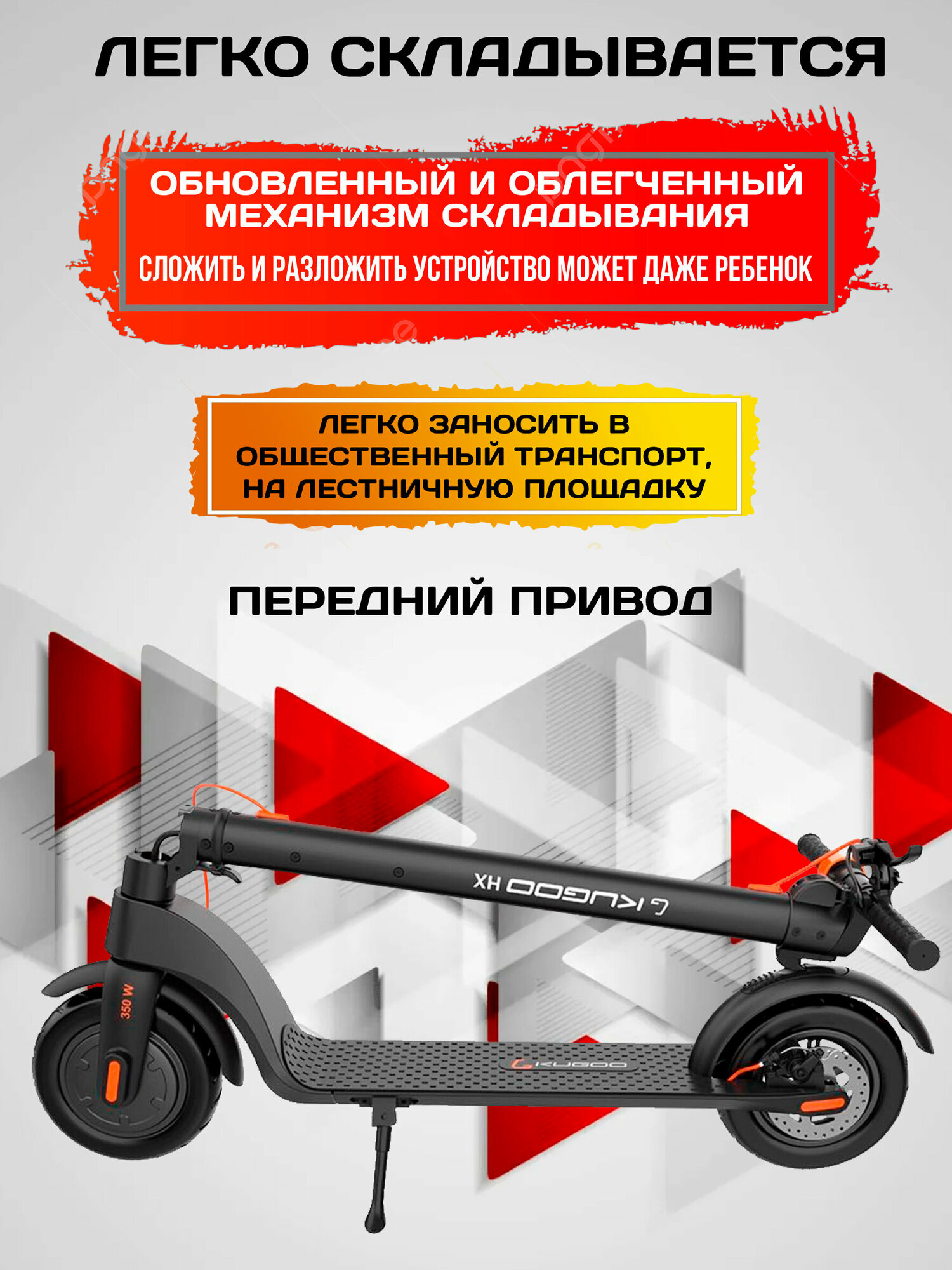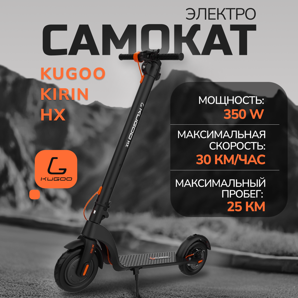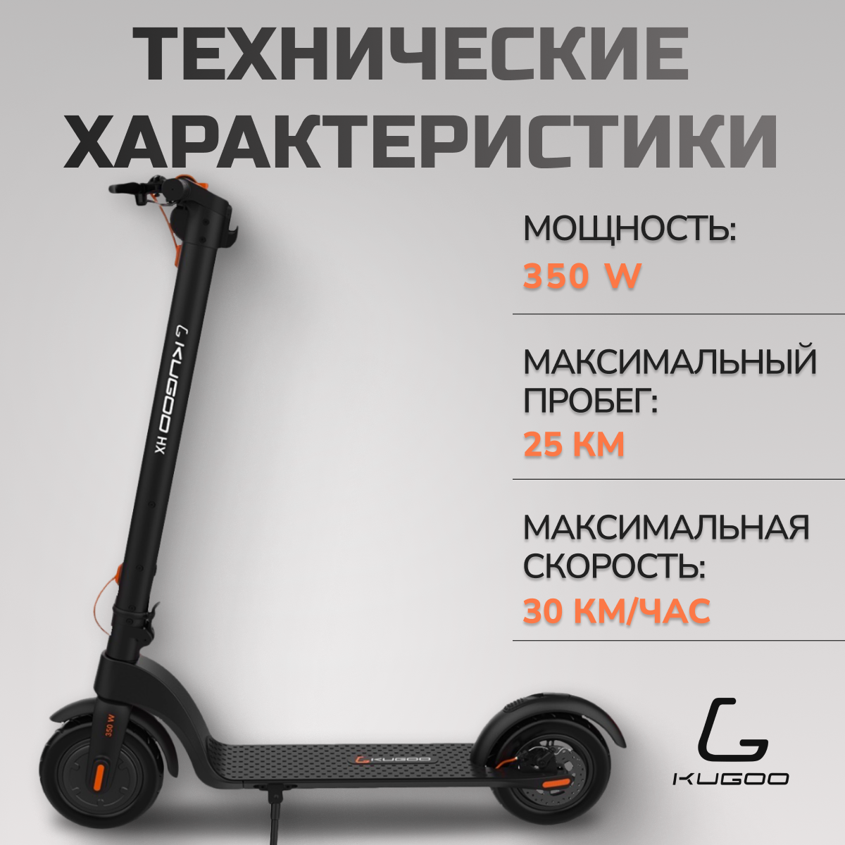 Электросамокат Kugoo HX черный, максимальная скорость до 25 км/ч, черный, 2024 интересное: