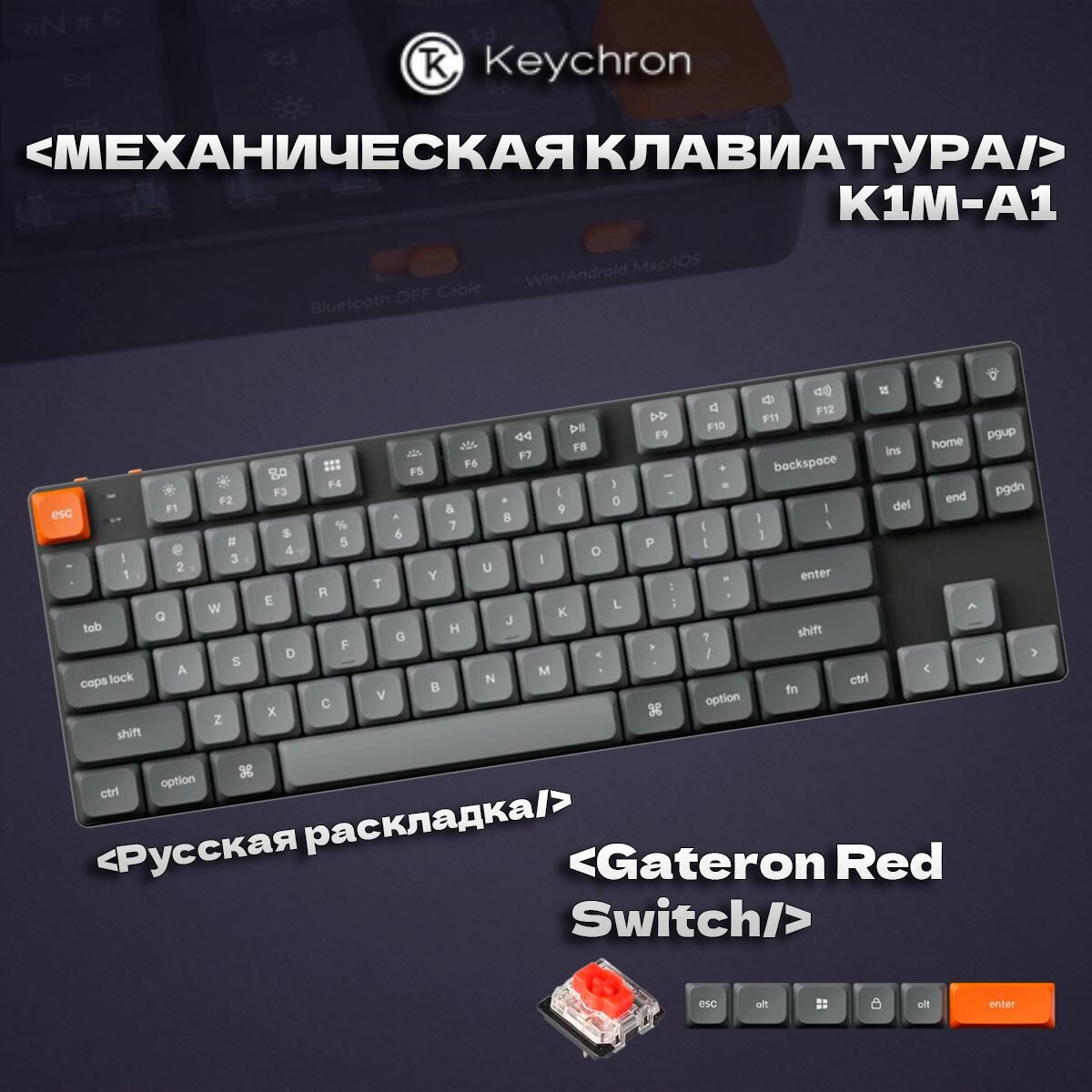 Купить Беспроводная механическая ультратонкая клавиатура QMK Keychron K1 Max(русская раскладка), 87 клавиш, White LED подсветка, Gateron Red Switch