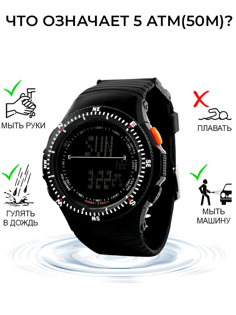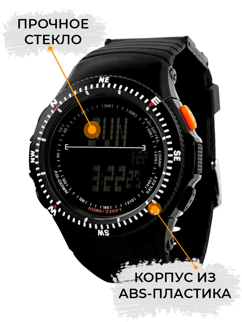 Часы наручные спортивные электронные мужские SKMEI противоударные, с таймером и подсветкой, черные интересное: