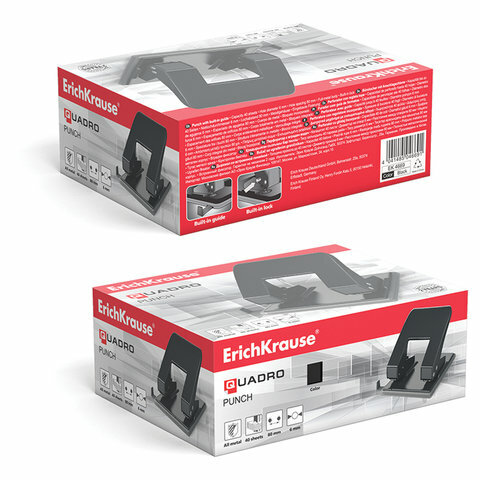 Купить Дырокол металлический ERICH KRAUSE "Quadro", комплект 2 шт., до 40 листов, черный, 4669