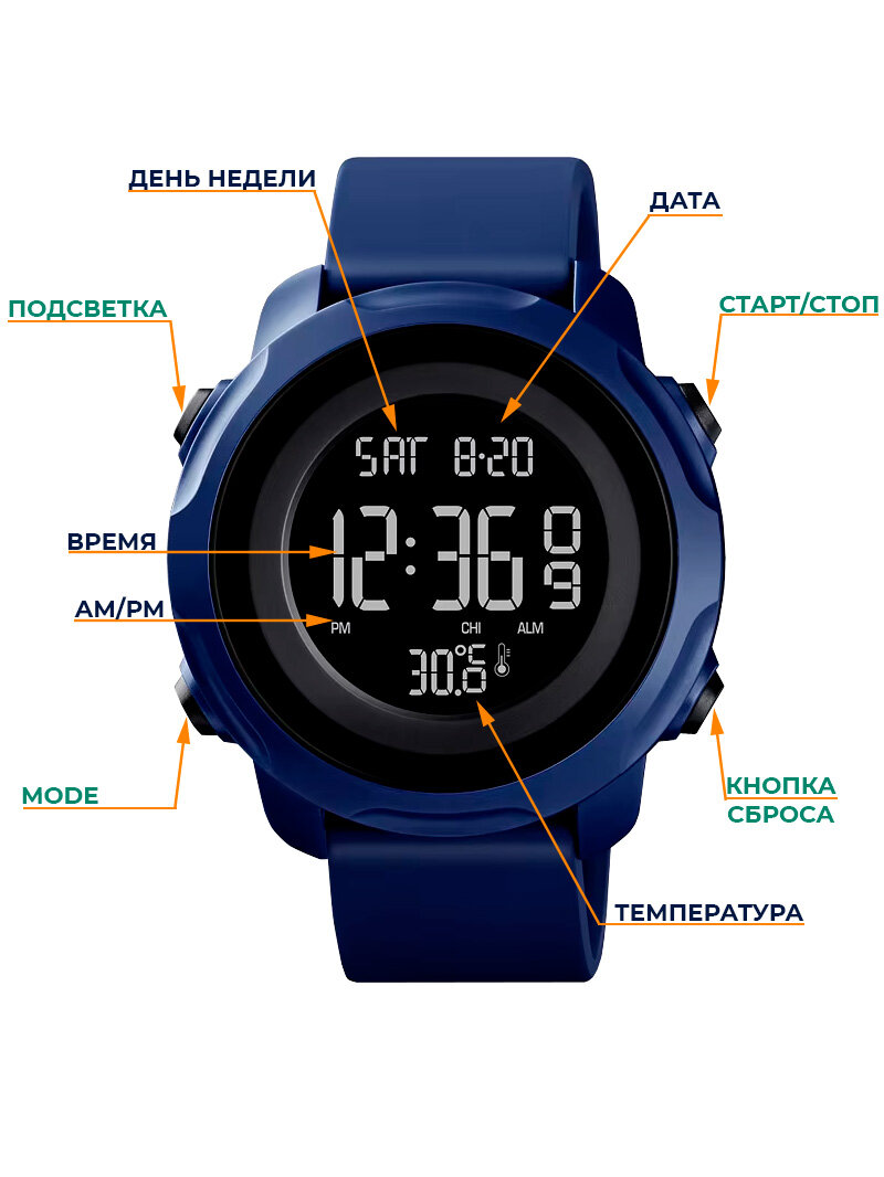 Часы наручные мужские электронные спортивные SKMEI водонепроницаемые, с секундомером и измерением температуры интересное: