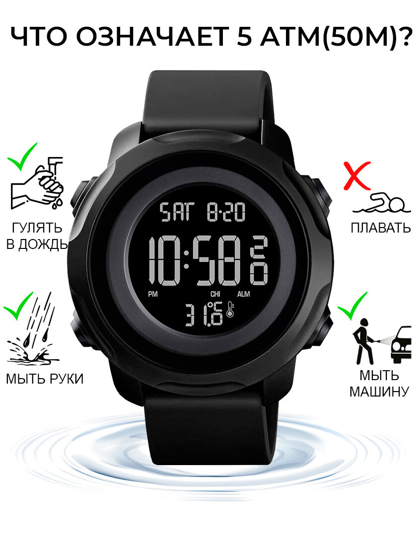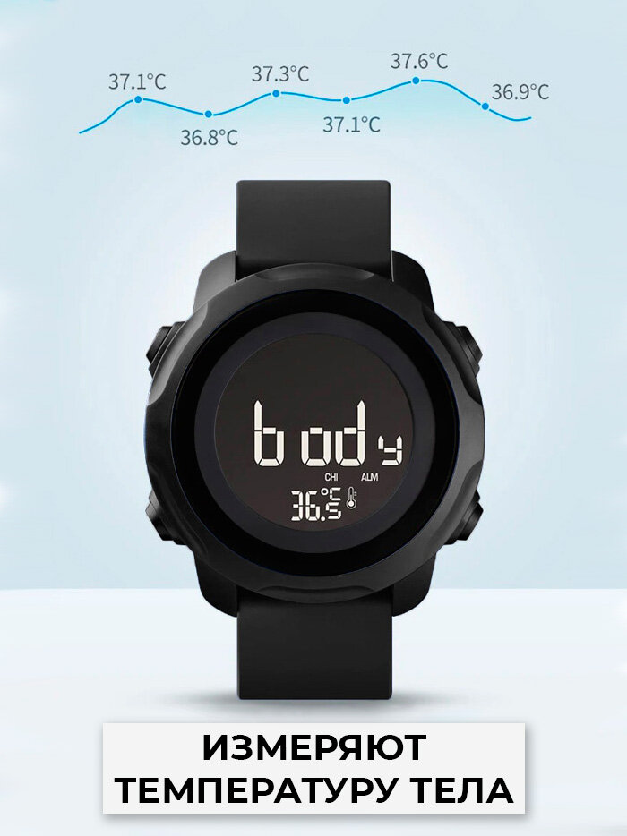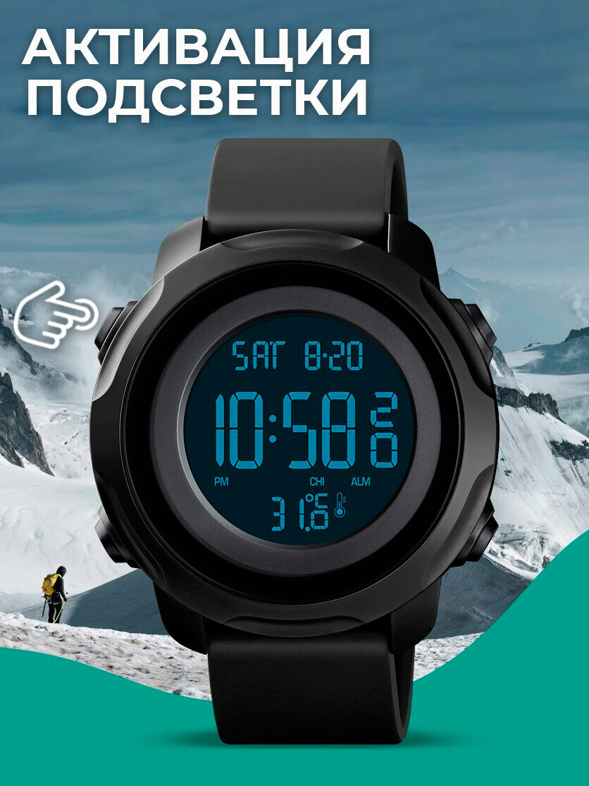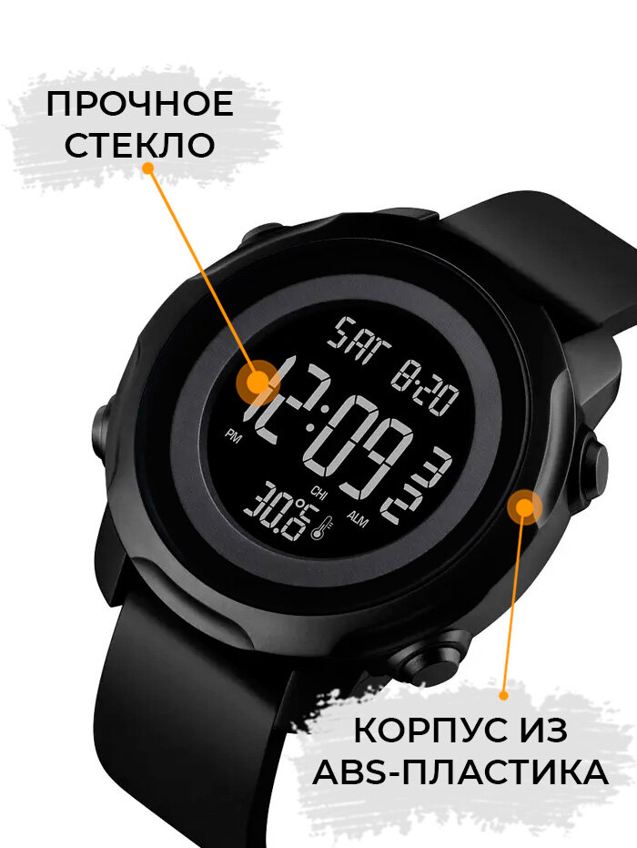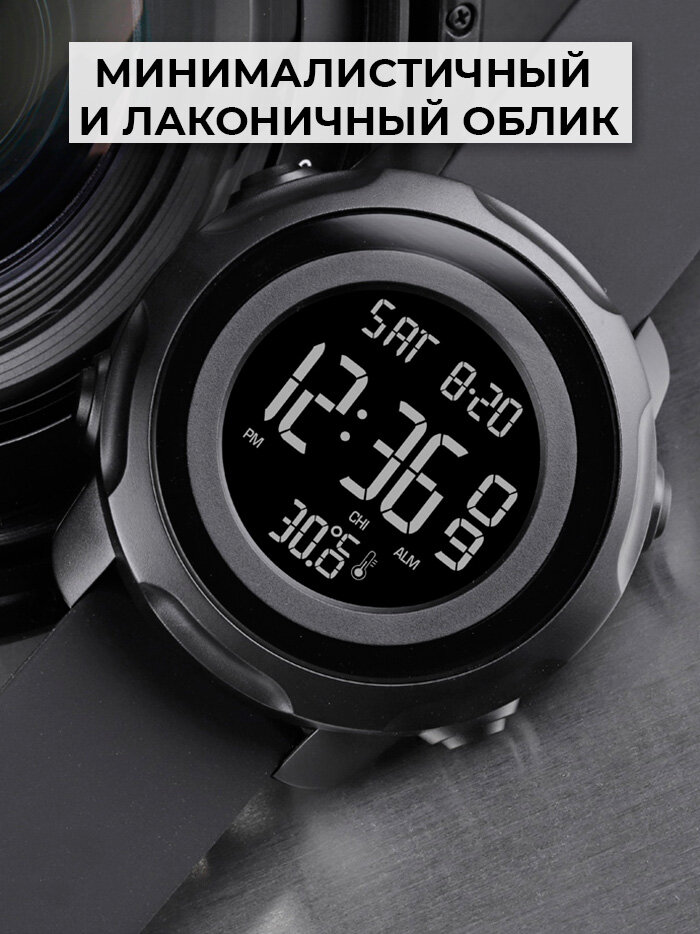 Часы наручные мужские электронные спортивные SKMEI водонепроницаемые, с секундомером и измерением температуры, черные интересное: