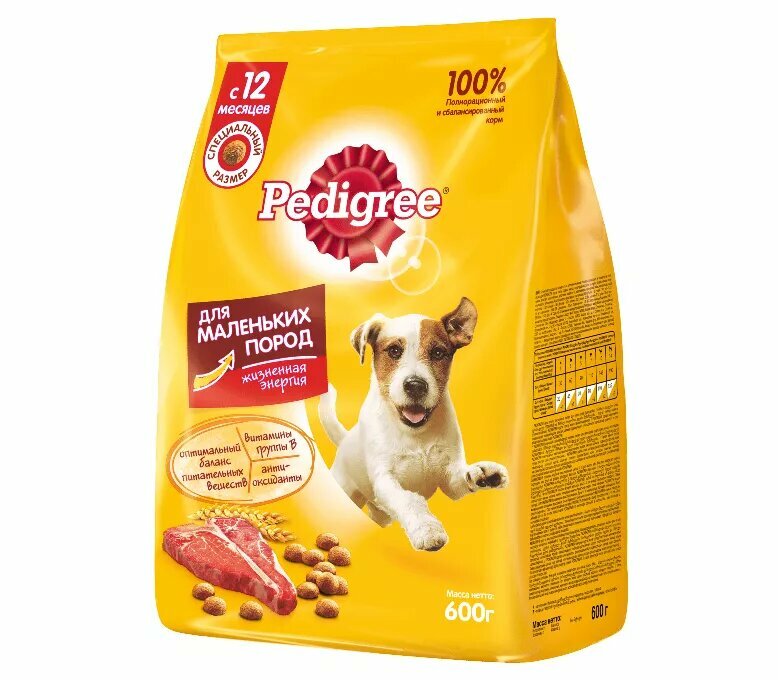 Сухой корм Pedigree для собак мелких пород, говядина, 600 г