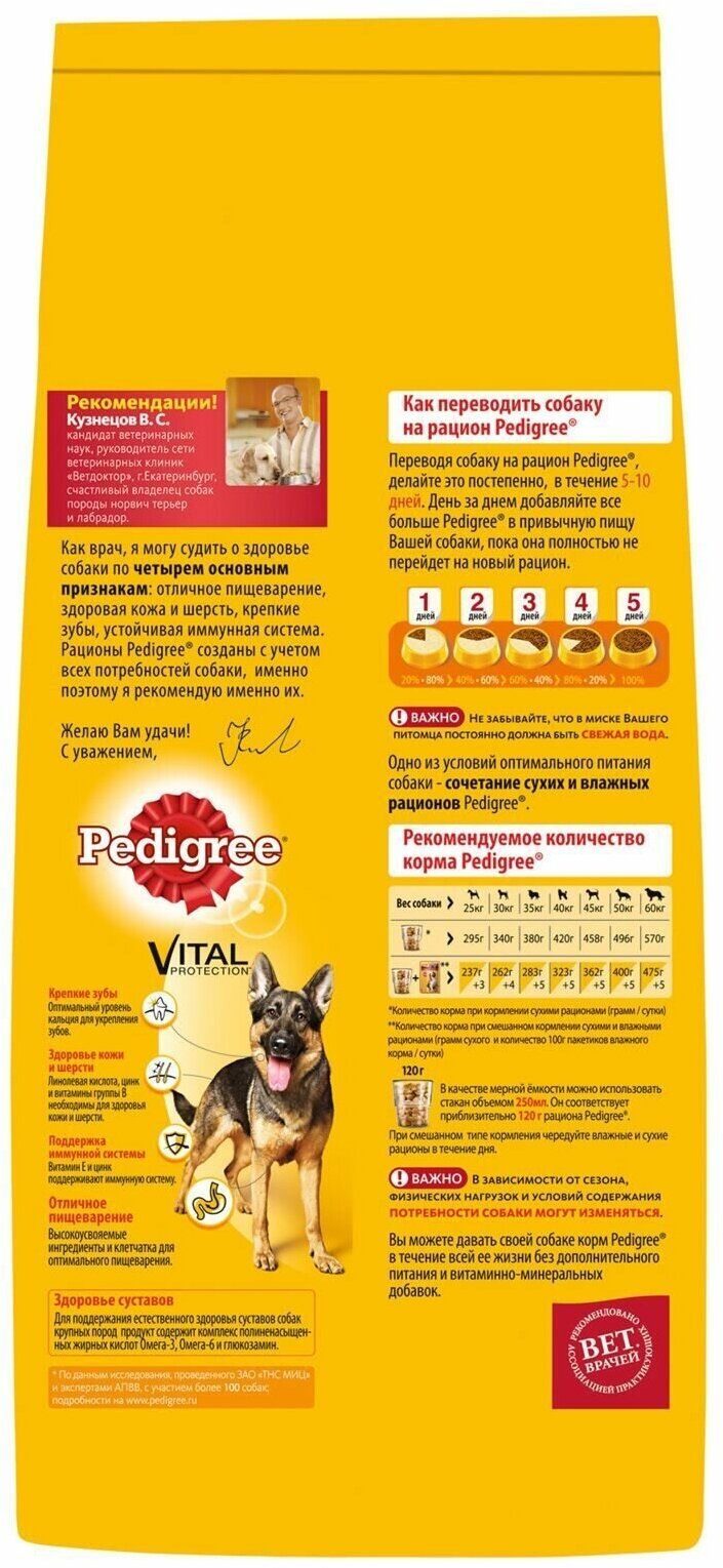 Корм сухой Pedigree полнорационный для взрослых собак крупных пород больше 25 кг, с говядиной, 13 кг