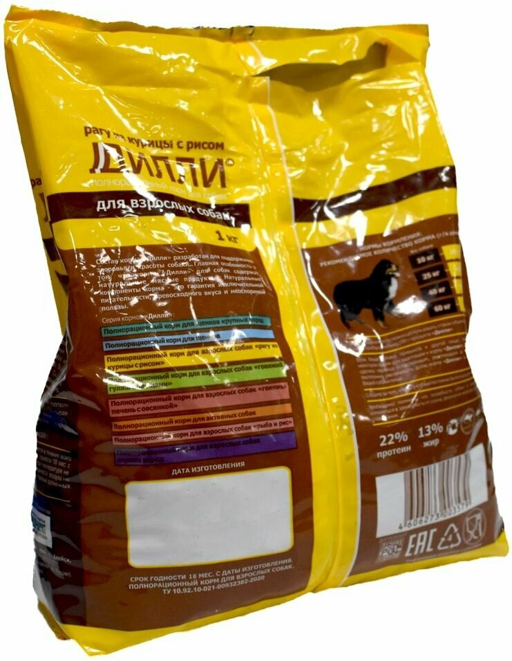 Дилли 1шт -14кг рагу из курицы с рисом сухой корм для собак