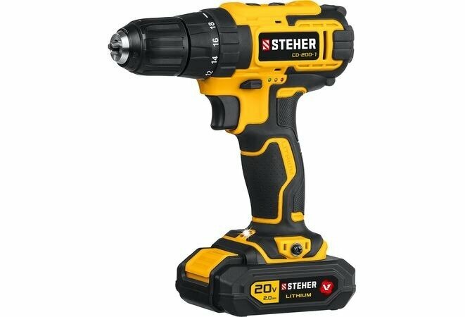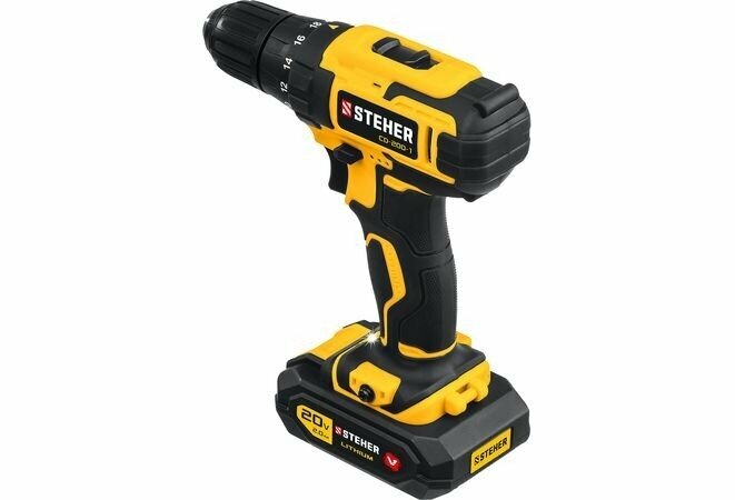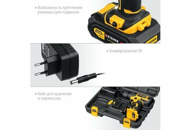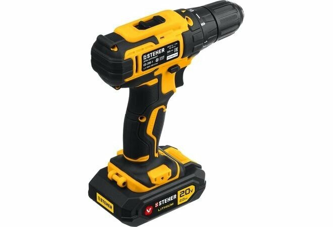 Дрель-шуруповерт STEHER 20 В, 2 АКБ (2Ач), в кейсе
