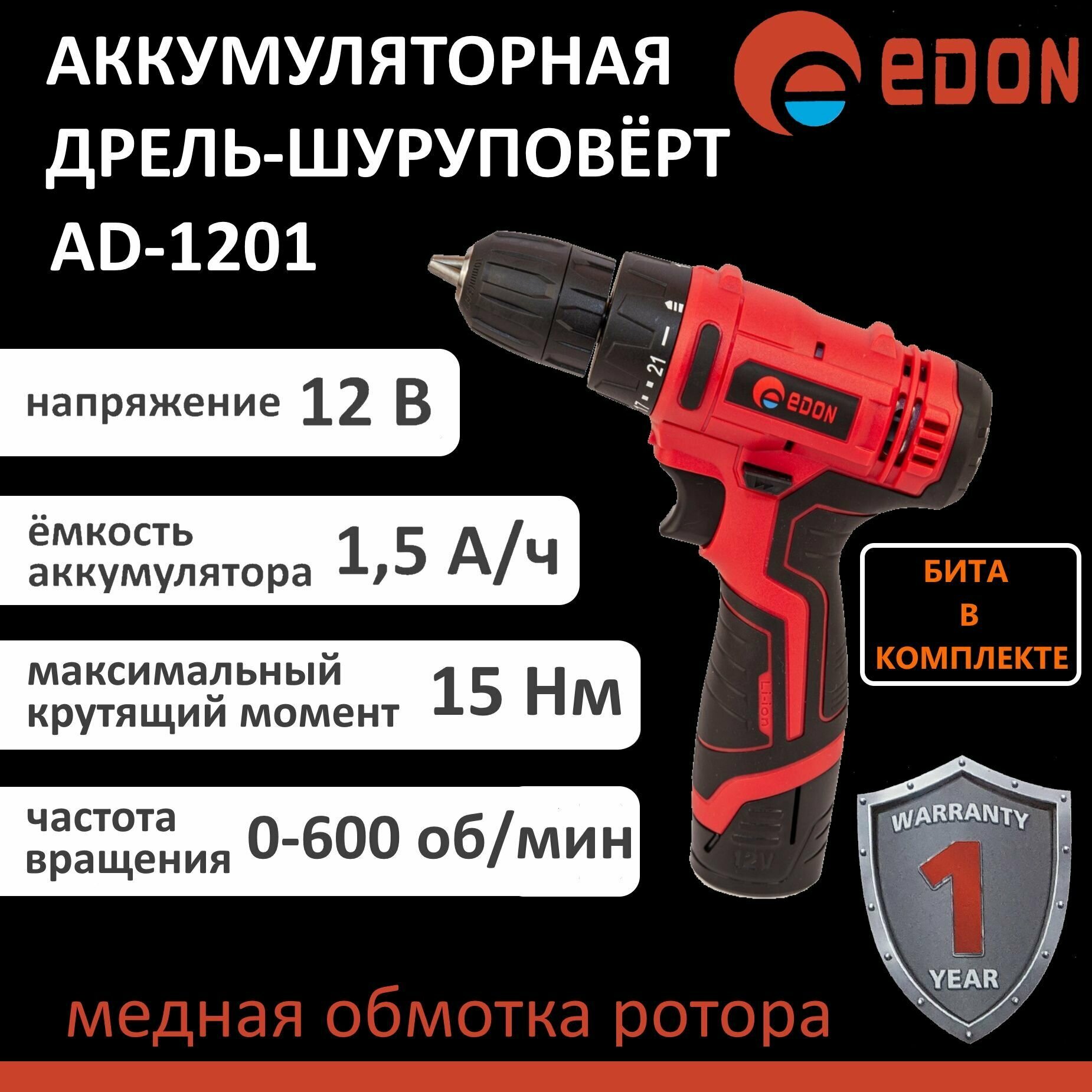EDON аккумуляторная дрель-шуруповерт AD-1201 201010200005