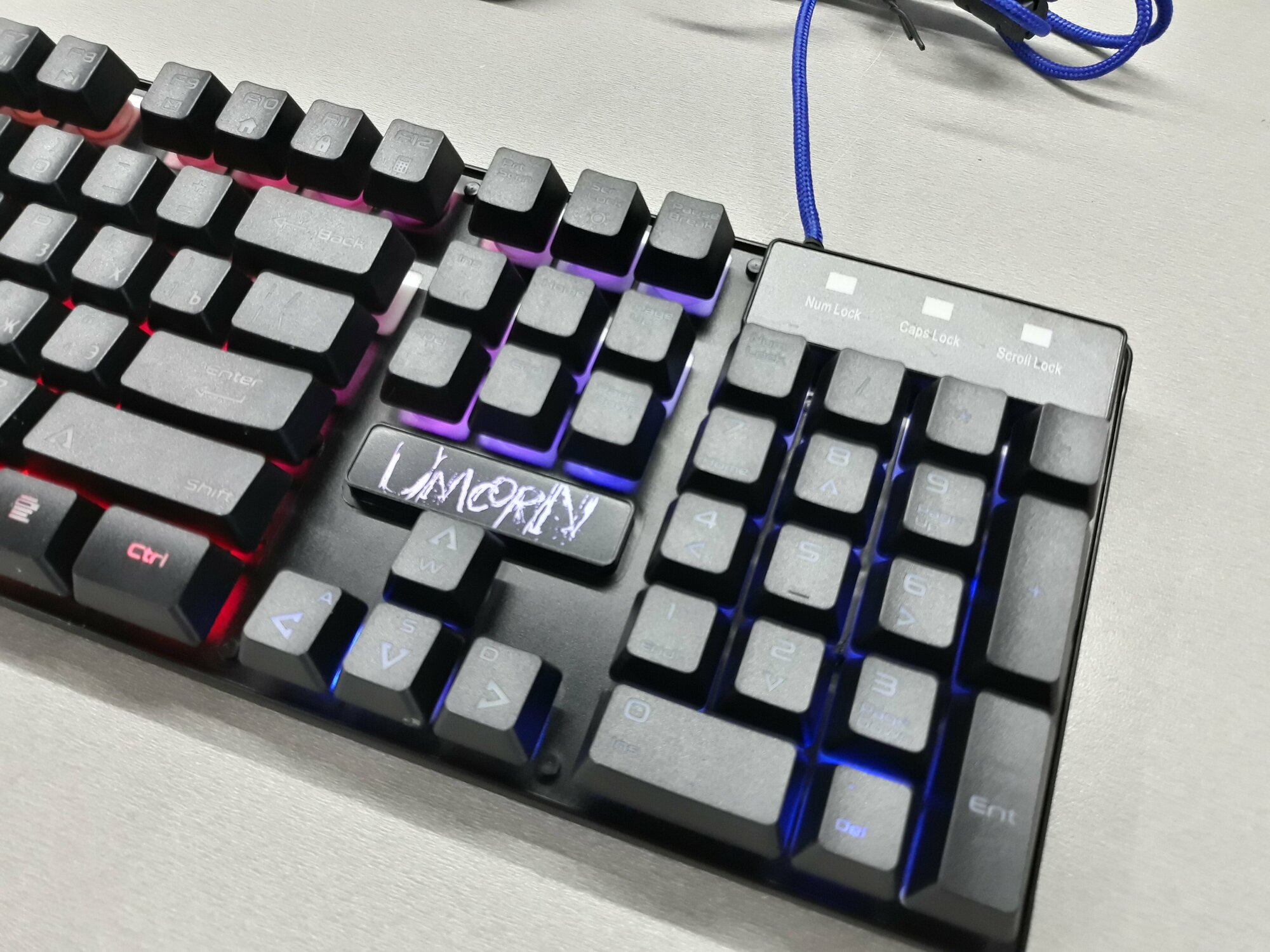 Разноцветная подсветка Нет ножек для подъема клавиатуры, но есть накладная пластинка |