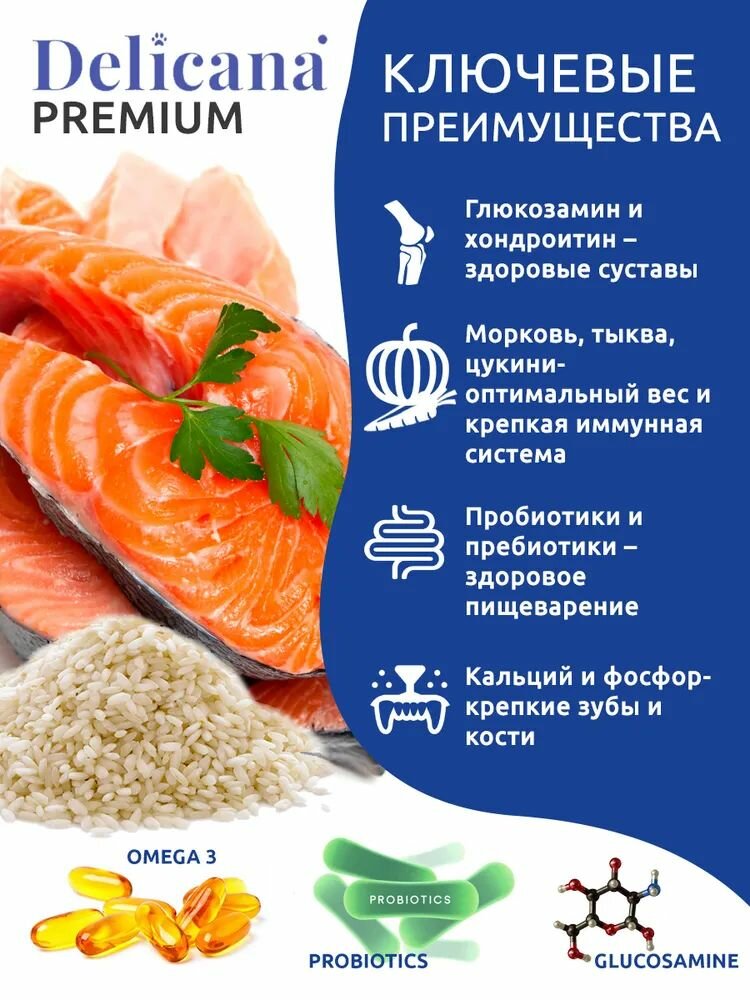 DELICANA Premium Сухой корм для собак мелких пород, лосось и рис, 1,5 кг