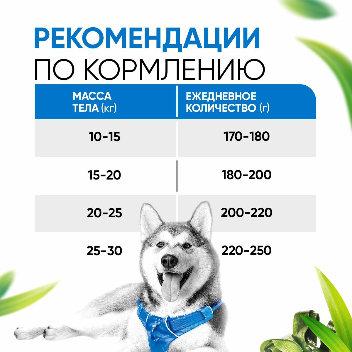 | Дозировка | - вес собаки до 2 кг: 35 г/сут. - вес собаки 2-4 кг: 35-45 г/сут. - вес собаки 4-6 кг: 45-85 г/сут. - вес собаки 6-10 кг: 85-175 г/сут. |