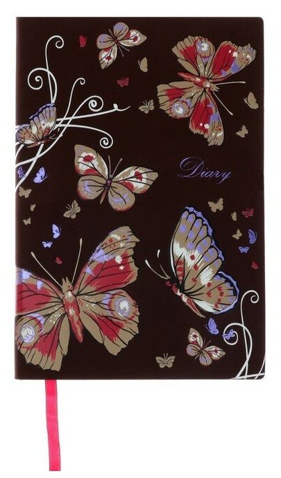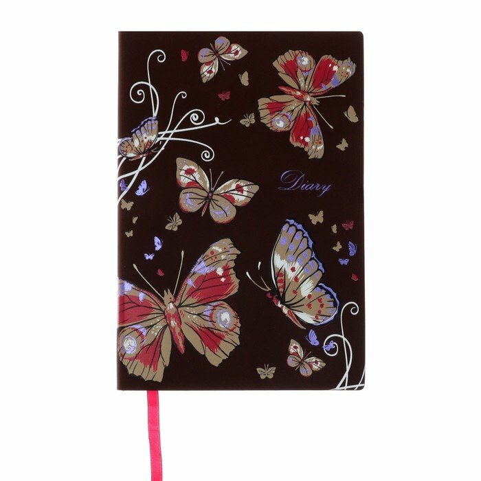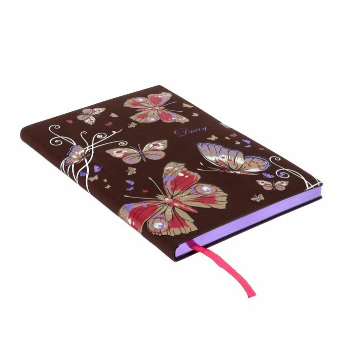 Купить Ежедневник недатированный А5, 120 листов "Бабочки", интегральная обложка, искусственная кожа, полноцветная печать, тиснение фольгой, тонированный блок 70 г/м2