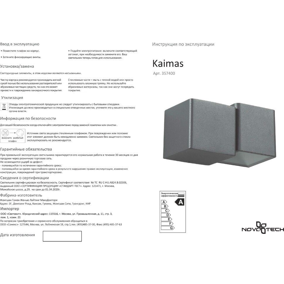 Novotech Уличный настенный светодиодный светильник Novotech Kaimas 357400
