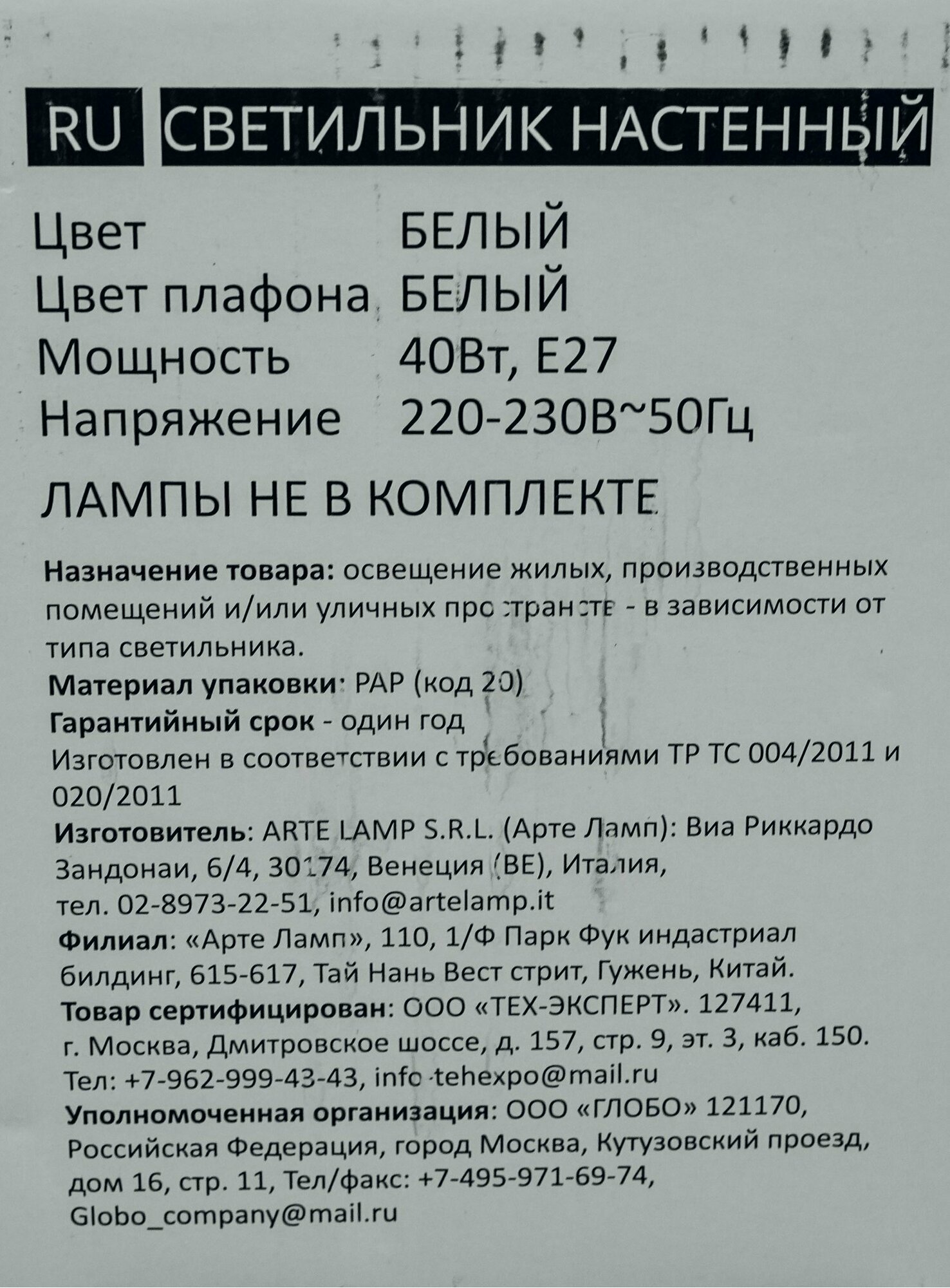 | Производитель | Arte Lamp |