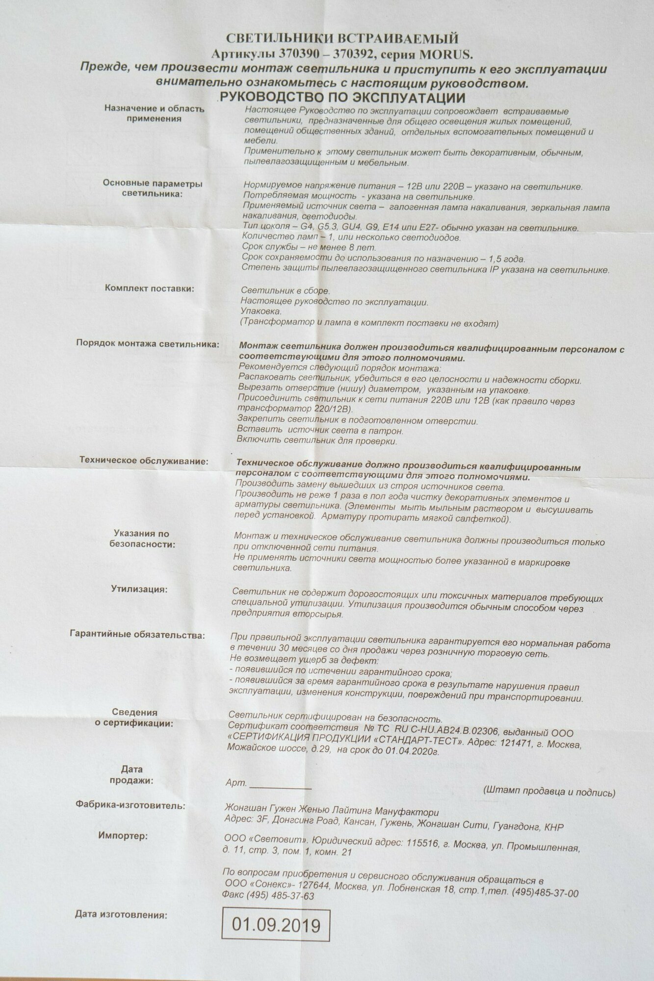 | Тип | светильник |