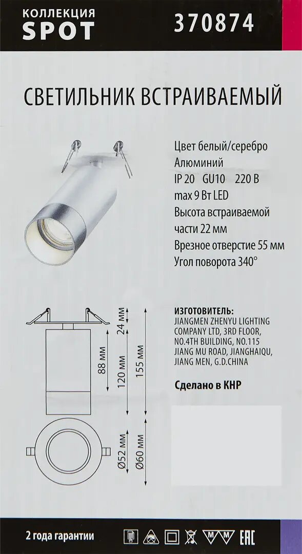 СохранитьВстраиваемый спот Novotech Spot Slim 370874 интересное: