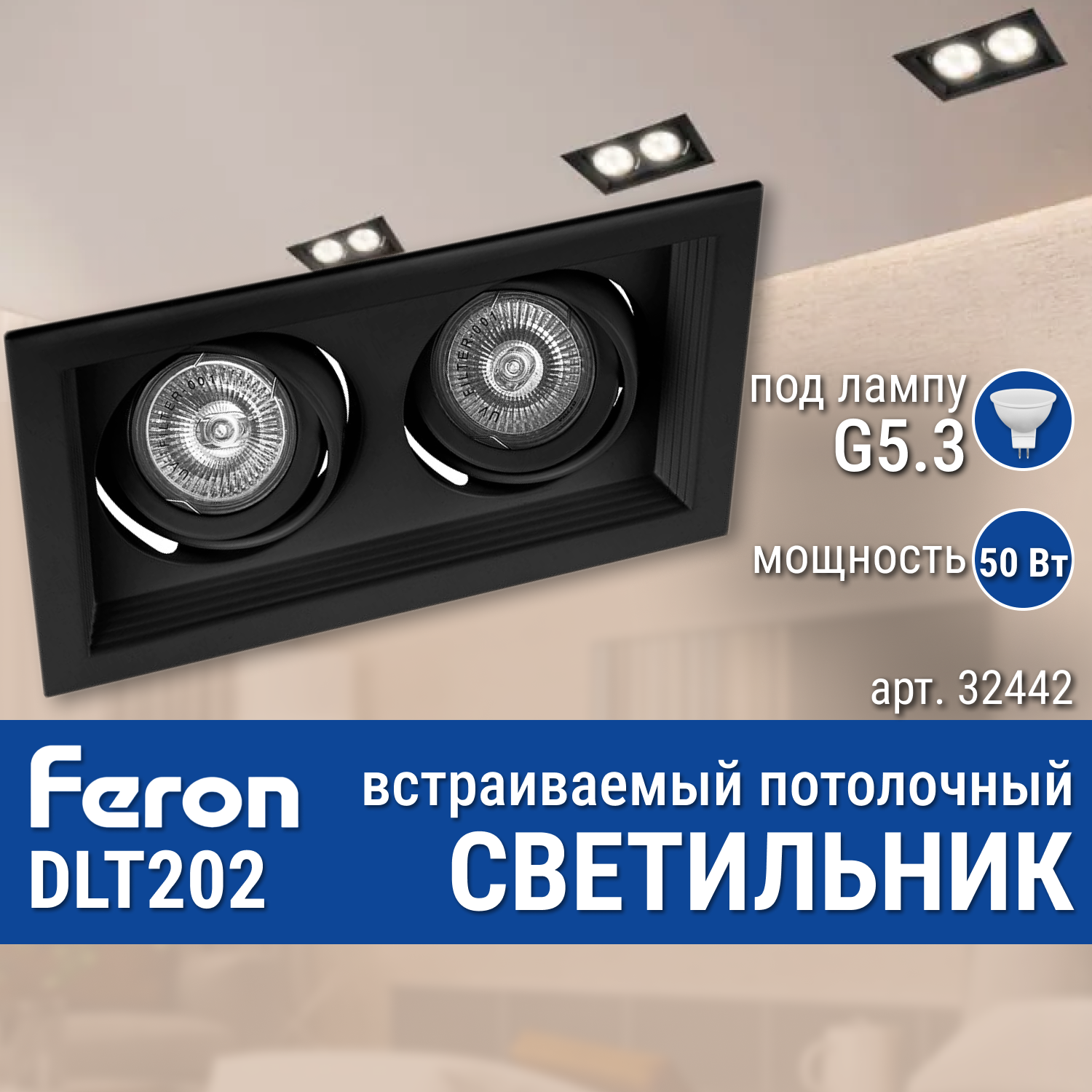 Светильник Feron Светильник потолочный встраиваемый, MR16 G5.3 черный, DLT202, Feron, 32442, G5.3, 100 Вт, 2 лампы, цвет арматуры: черный, цвет плафона: черный