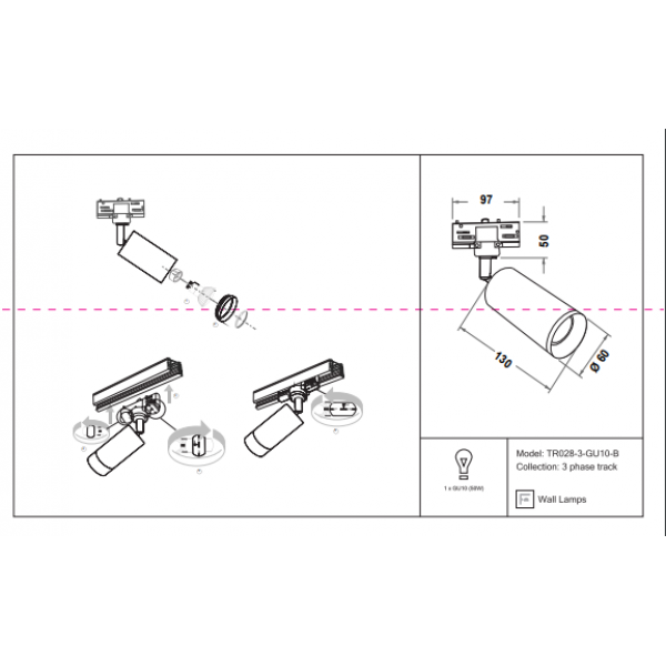 Светильник трековый, спот Technical Focus, TR028-3-GU10-MG, 50W, LED