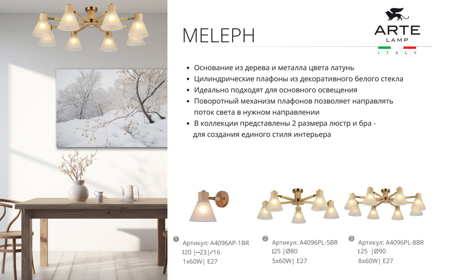 СохранитьЛюстра на штанге Arte Lamp Meleph A4096PL-5BR интересное: