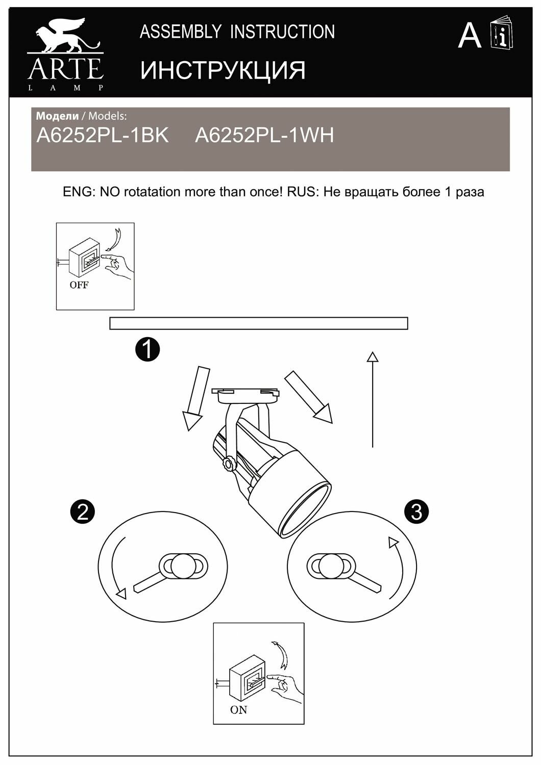 ARTE LAMP Светильник на шине Arte Lamp A6252PL-1WH