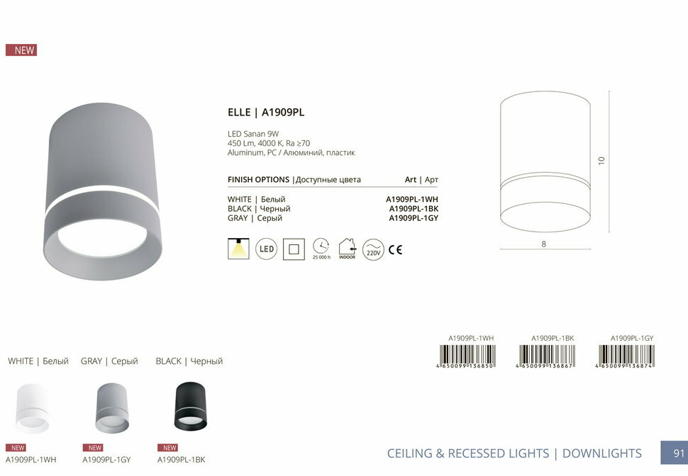 Светильник точечный накладный светодиодный Arte Lamp A1909PL-1GY ARTELAMP серый