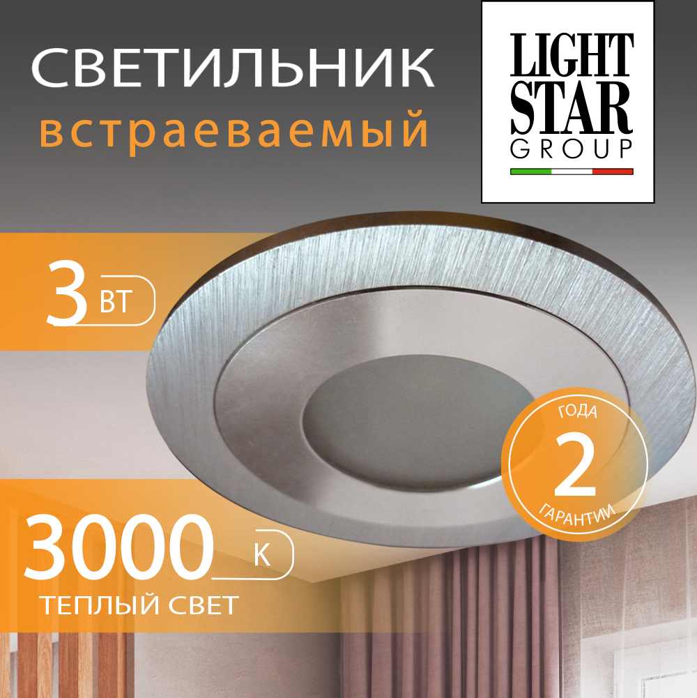 Встраиваемый светильник Lightstar Leddy 212170, LED, 3Вт, кол-во ламп:1шт., Серый