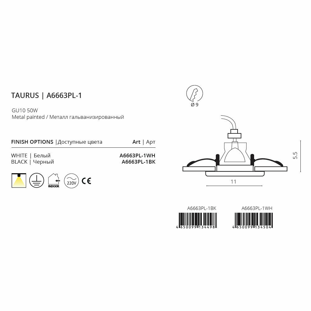 Сохранитьсветильник встраиваемый ARTE LAMP Taurus GU10 50Вт металл черно белый интересное: