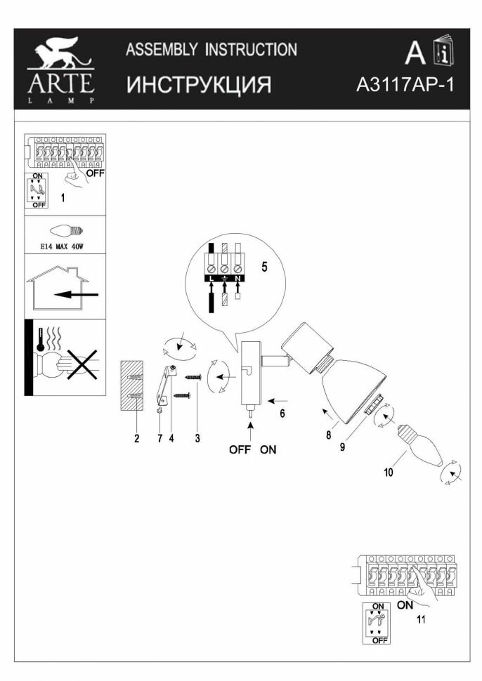 ARTE Lamp #ARTE LAMP A3117AP-1BK светильник настенный