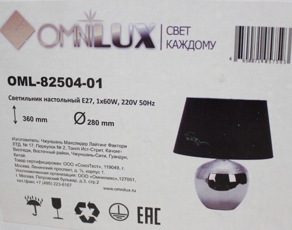 СохранитьНастольная лампа Omnilux OML-82504-01, E27, мощность 60 Вт, цвет Серебро интересное: