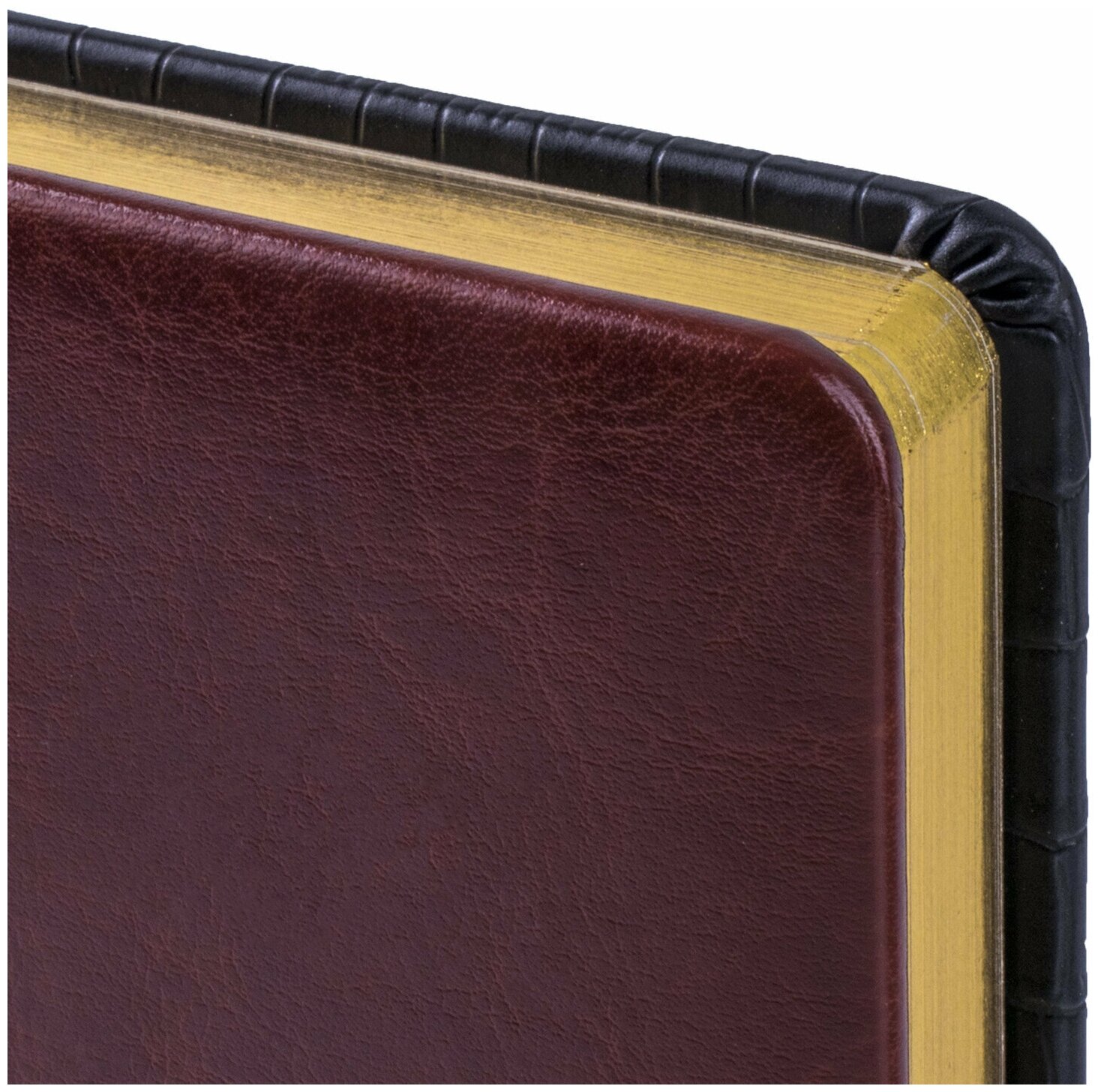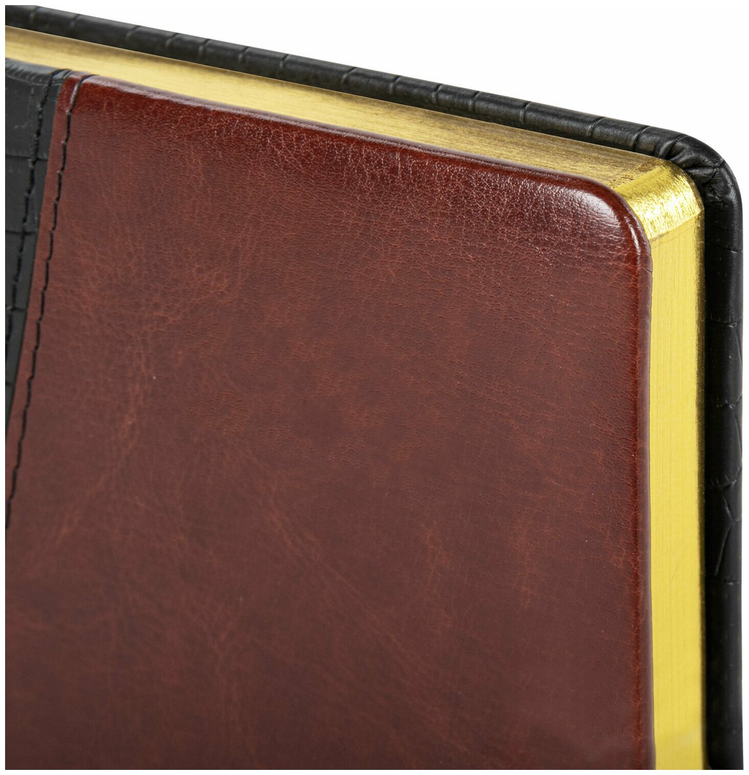 Ежедневник BRAUBERG недатированный, А5, 138х213 мм, Cayman, комбинированная кожа, 160 л., черный/темно-кор., крем. бл., зол.срез, 123399