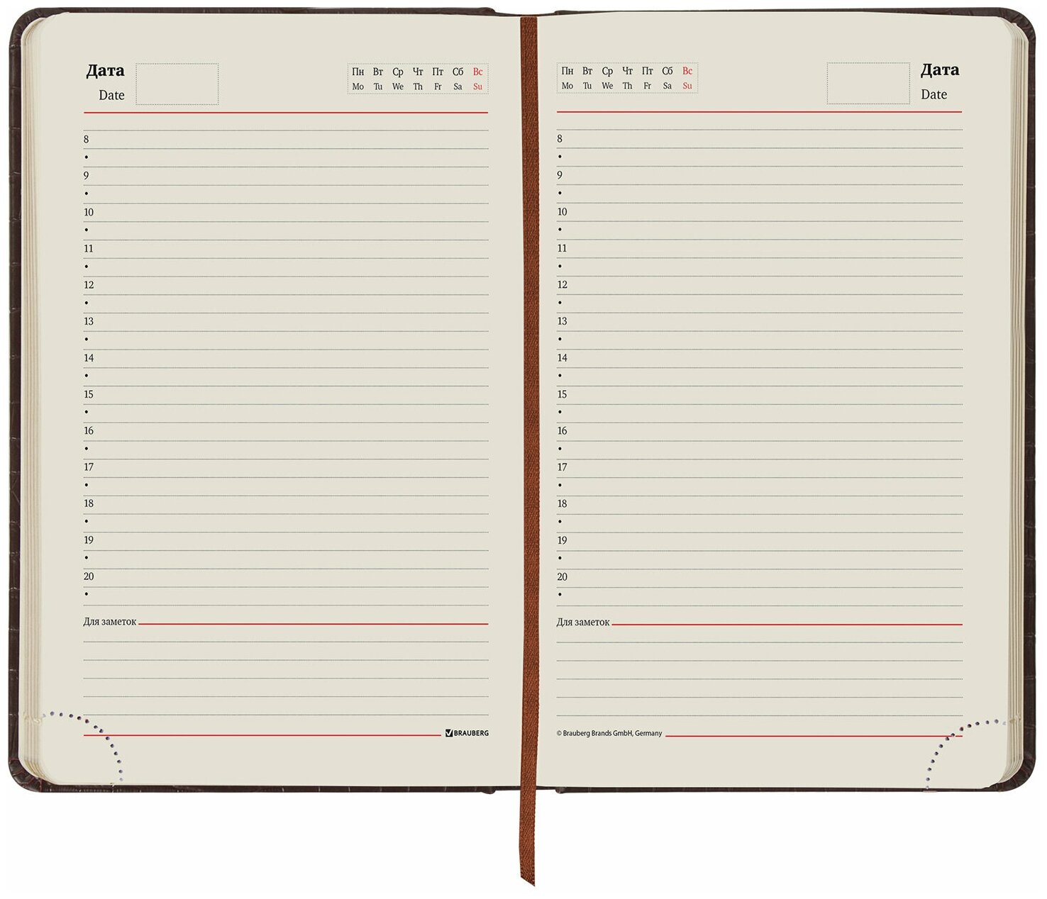 Ежедневник-планер (планинг), записная книжка, блокнот недатированный А5 138х213 мм Brauberg Cayman под кожу, 160 л., коричневый/коричневый, 125084