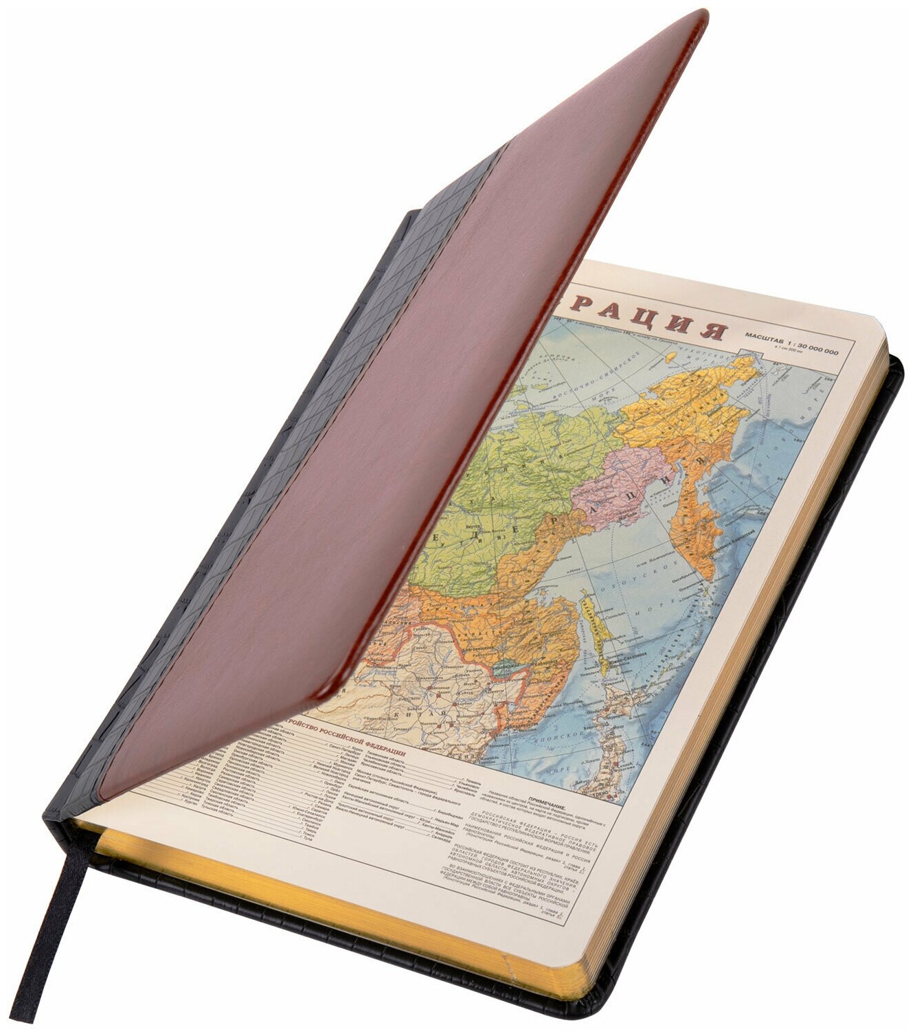 Ежедневник-планер/планинг/записная книжка/блокнот недатированный формат А5 под кожу, 160 листов, Brauberg Cayman, черный/коричневый, золотой срез, 123399