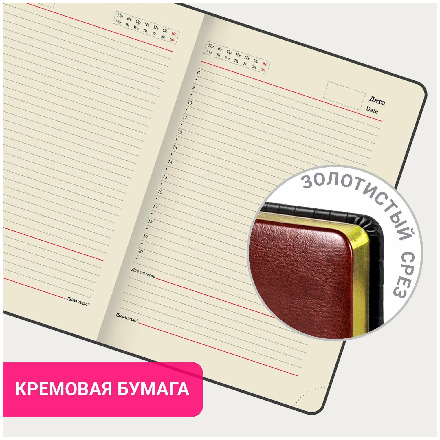 Ежедневник BRAUBERG недатированный, А5, 138х213 мм, Cayman, комбинированная кожа, 160 л., черный/темно-кор., крем. бл., зол.срез, 123399