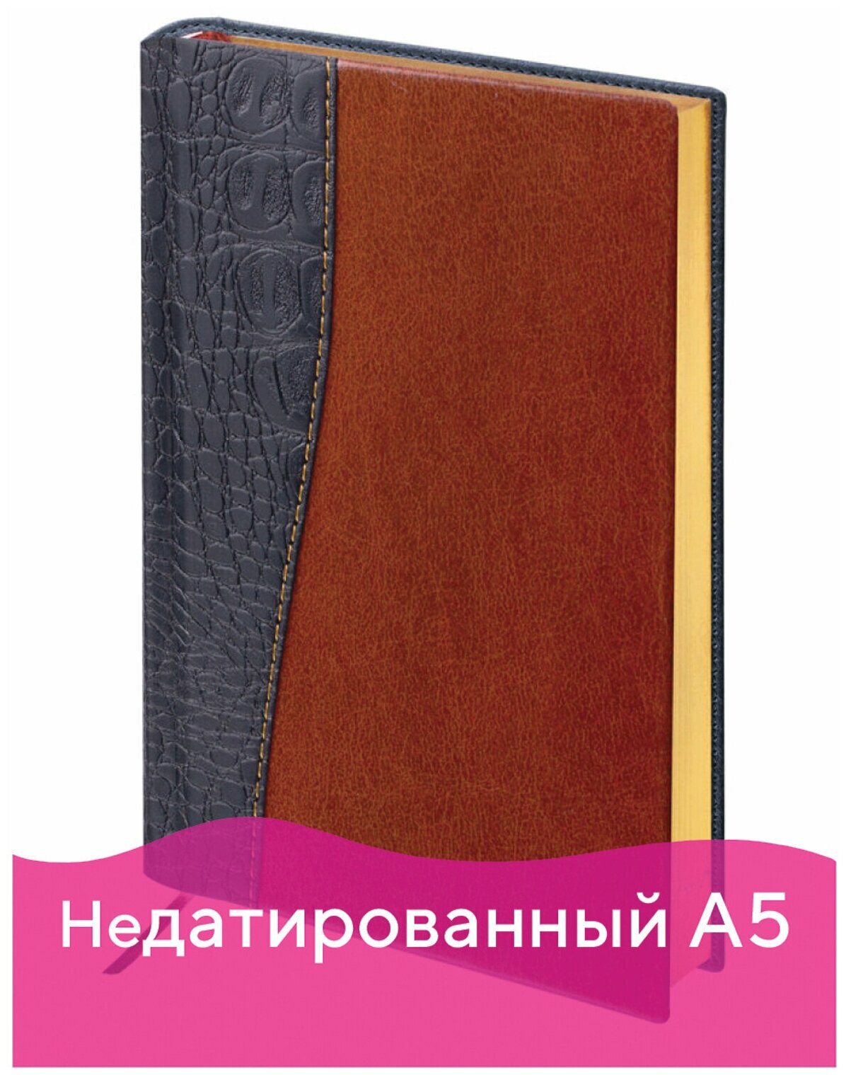 Ежедневник Brauberg недатированный А5 (138*213 мм) "Cayman", комбинированная кожа, 160 листов, золотой срез (123399)