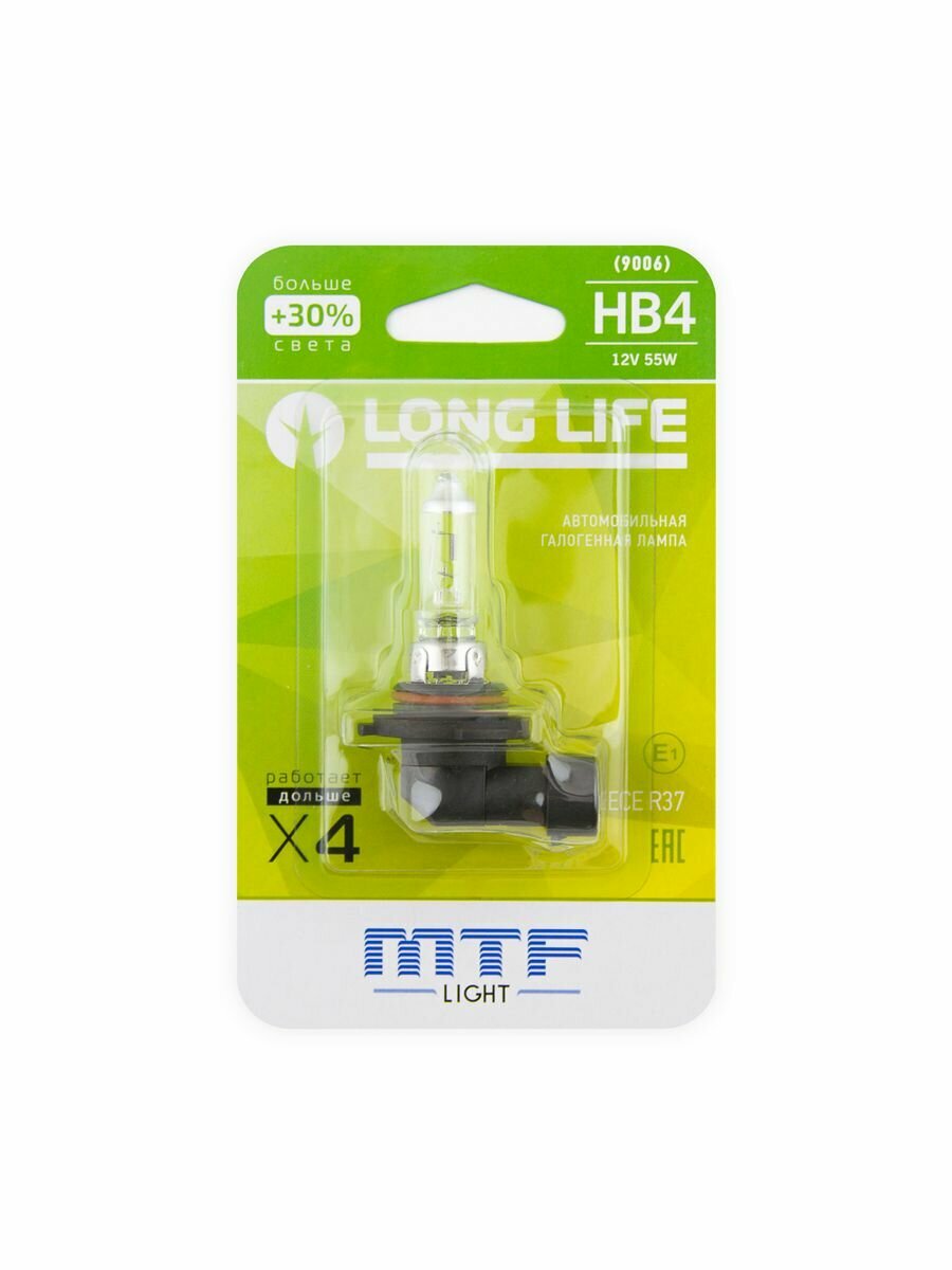 MTF-LIGHT HLL12B4B Галогенная лампа MTF light HB4 9006 12V 55W LONG LIFE x4 блистер HLL12B4B