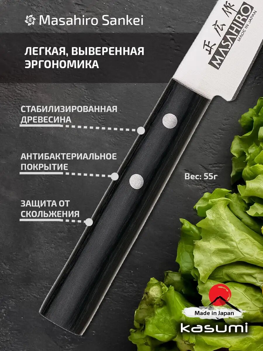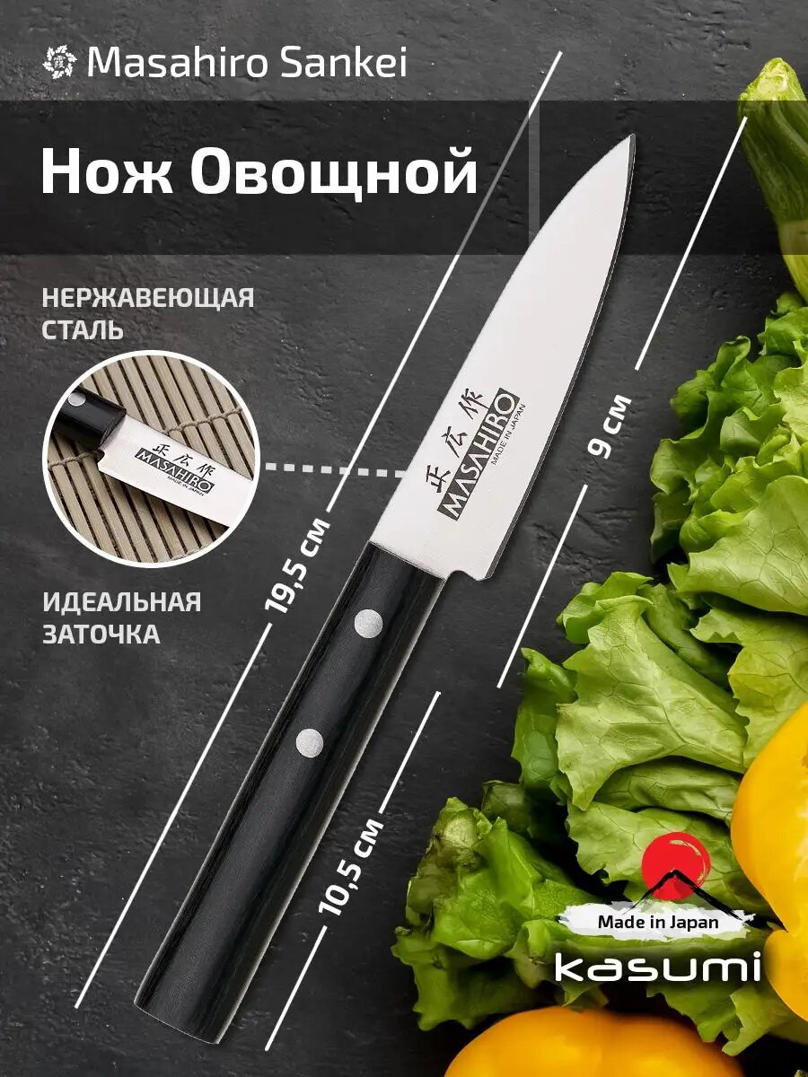 Нож кухонный для овощей Masahiro Sankei, 9 см. Сталь AUS-8A, стабилизир. дерево. 35844