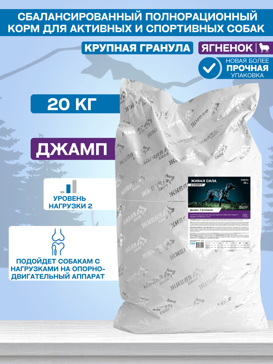 Купить Живая сила Спорт, Джамп для собак с регулярными тренировками ягненок, Крупная гранула (20 кг)