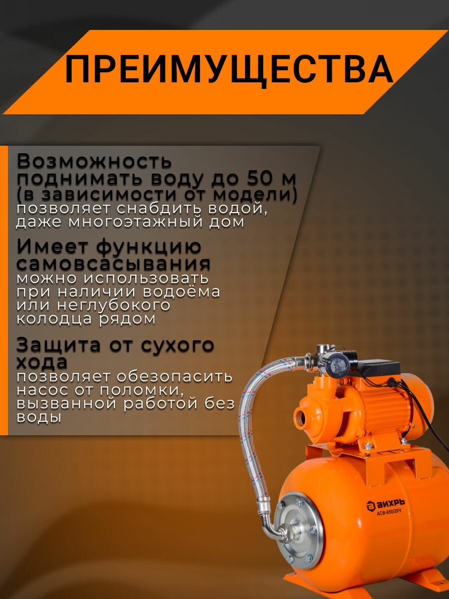Автономная станция водоснабжения Вихрь АСВ-400/2Ч, 400 Вт, напор – 35 м, 35 л/мин, гидроаккумулятор – 2 л