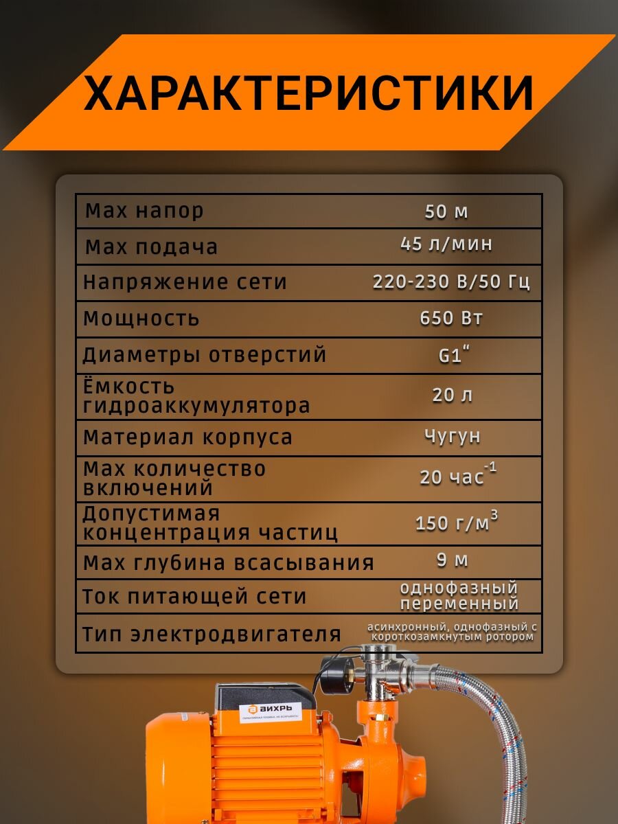 Купить Насосная станция Вихрь АСВ-650/20Ч 45 л/мин (68/1/18)