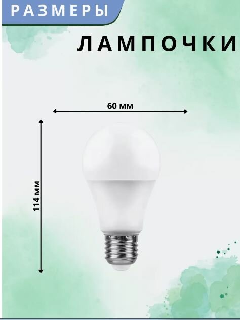 (10 шт.) Светодиодная лампочка Feron ЛОН A60 E27 12W(1100lm) 2700K 2K матовая 118x60, LB-93 25489 Теплый белый. Цоколь E27