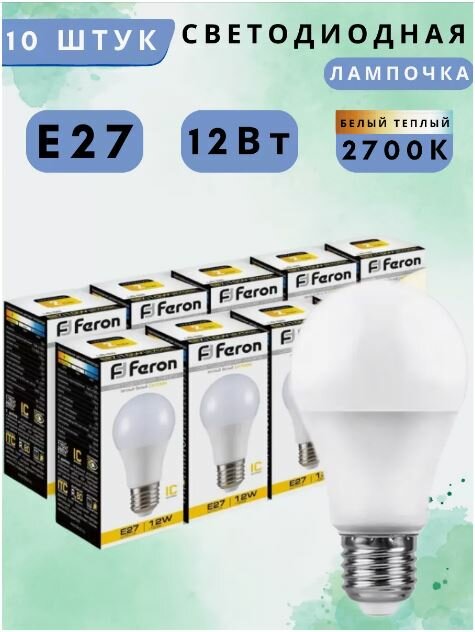 Упаковка светодиодных ламп 10 шт. Feron LB-93 25489, E27, A60, 12 Вт, 2700 К