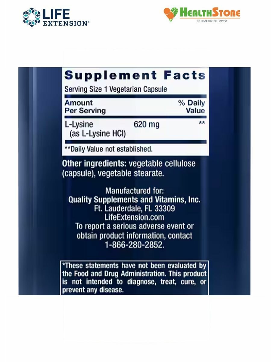 LIFE Extension L-Lysine 620 mg, 100 капс.