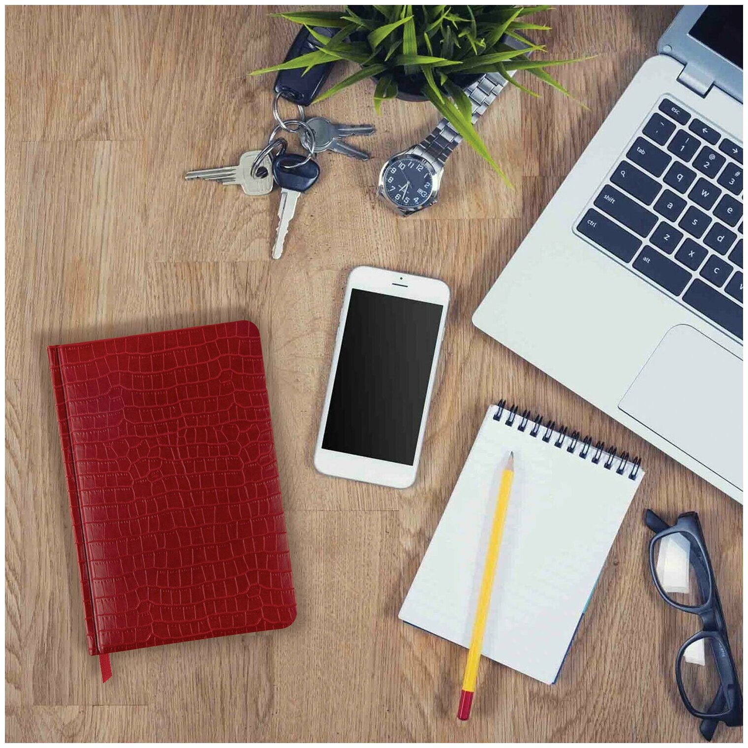 Ежедневник недатированный А5 (138х213 мм) BRAUBERG "Comodo", под матовую крокодиловую кожу, 160 л, крем. блок, зол. срез, красный, 123840