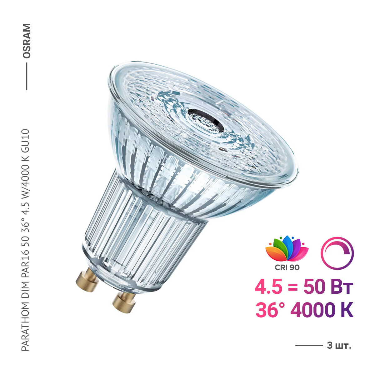 Osram / Ledvance PARATHOM DIM PAR16 50 36 4.5 W/4000 K GU10 (3 шт.)
