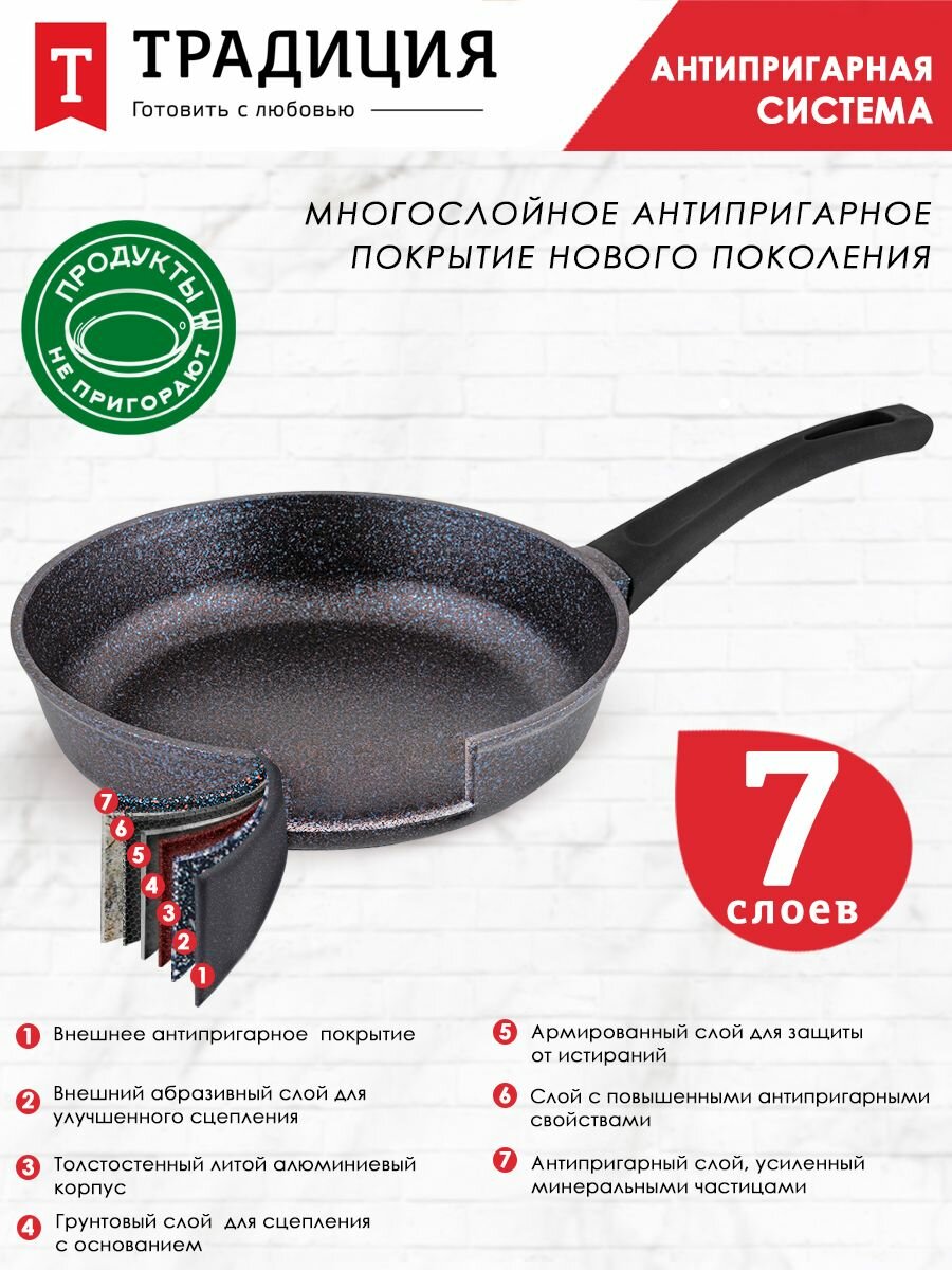Сковорода Традиция Сапфир антипригарная, литая, 22 см