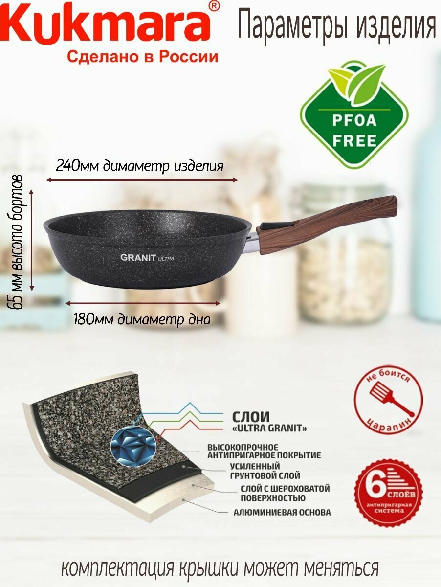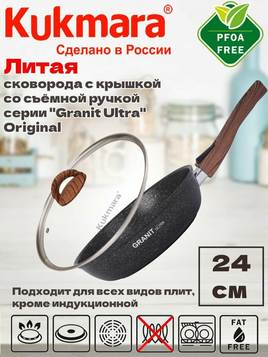 Купить Сковорода Kukmara Granit ultra original 24см со съемной ручкой ст с крышкой (сго243а) .