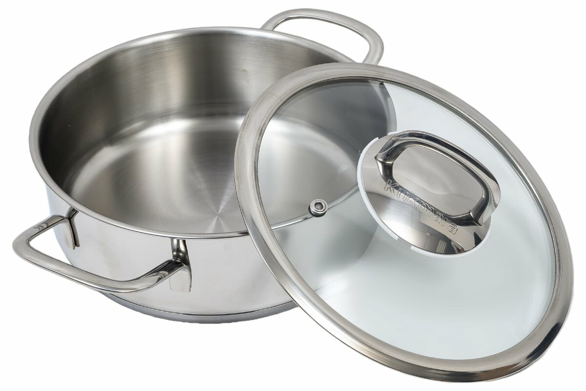 Сотейник из нержавеющей стали KUKMARA Safia 3,9 л со стеклянной крышкой