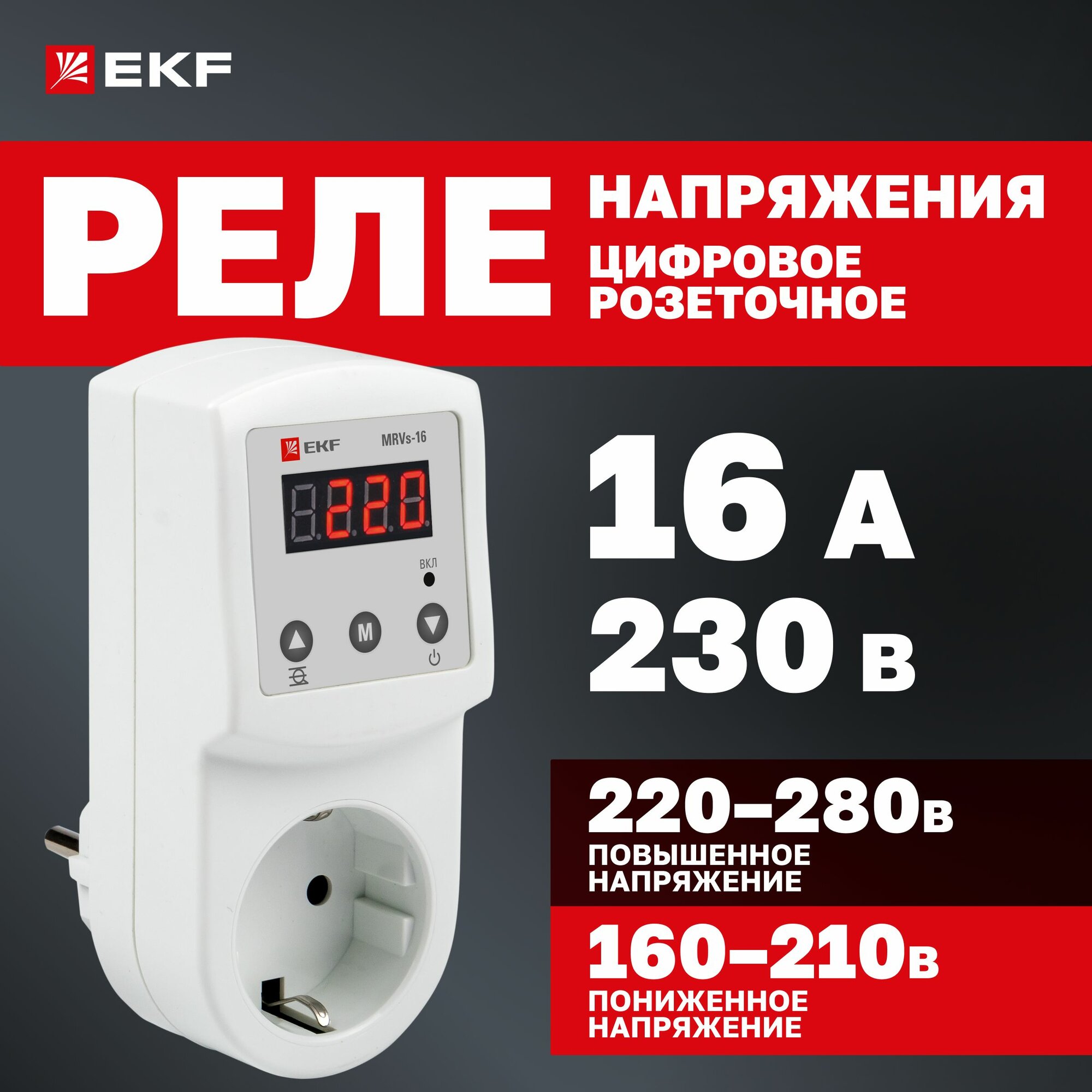 Цифровое розеточное реле напряжения EKF MRVs-16 PROxima MRVs-16 .