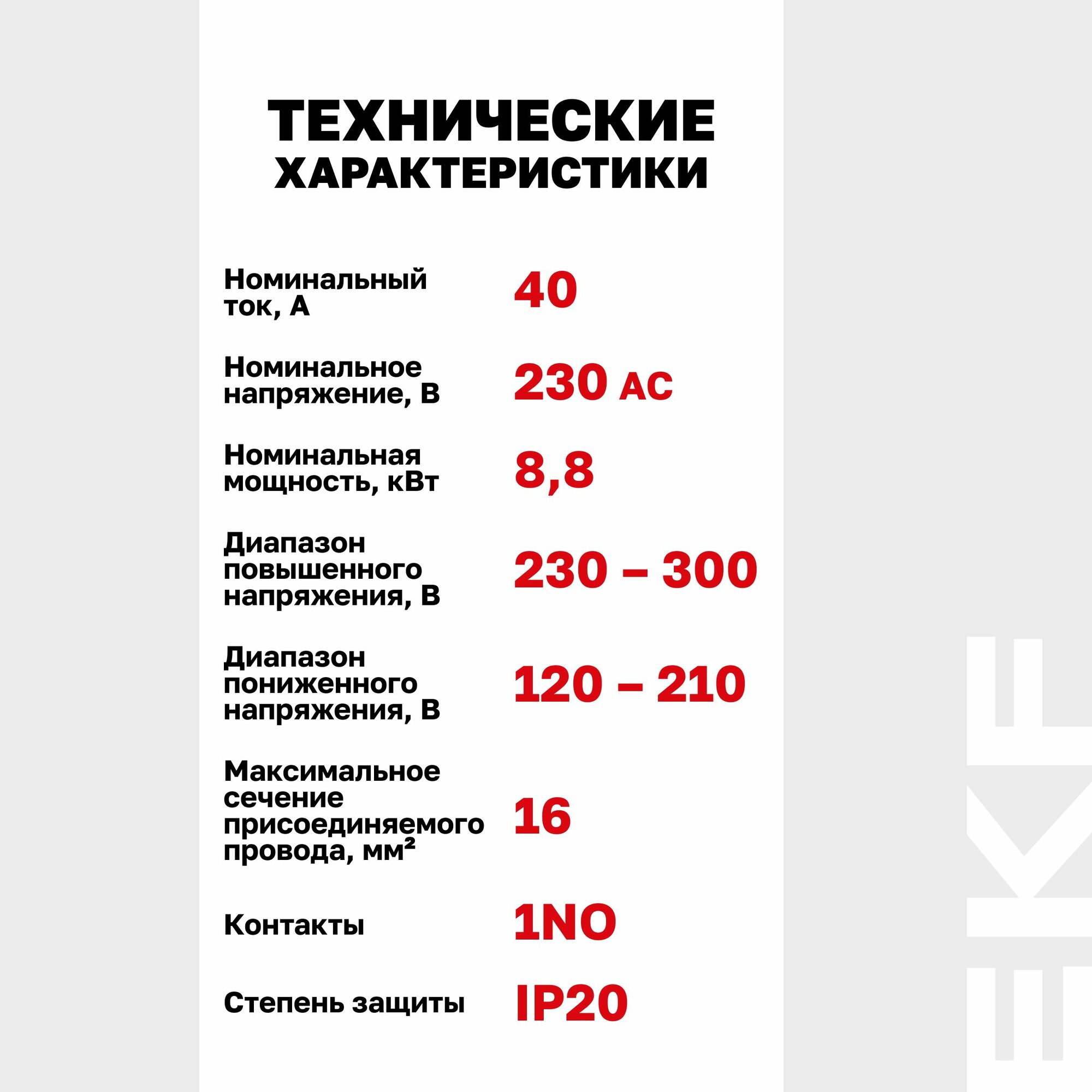 | Номинальный коммутируемый ток | 40 А |