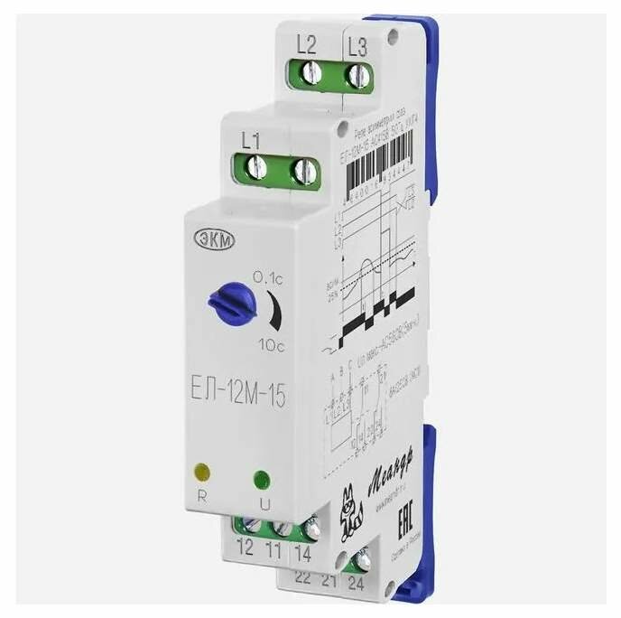 Реле контроля фаз ЕЛ-12М-15 400В 50Гц 1модуль DIN-рейка. 4640016934430 Меандр АО